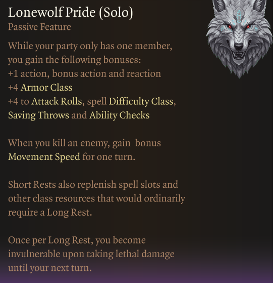 - 每场长休一次,当你受到致命伤害时变得无敌直到下个回合开始,并回复 4d4 生命值。