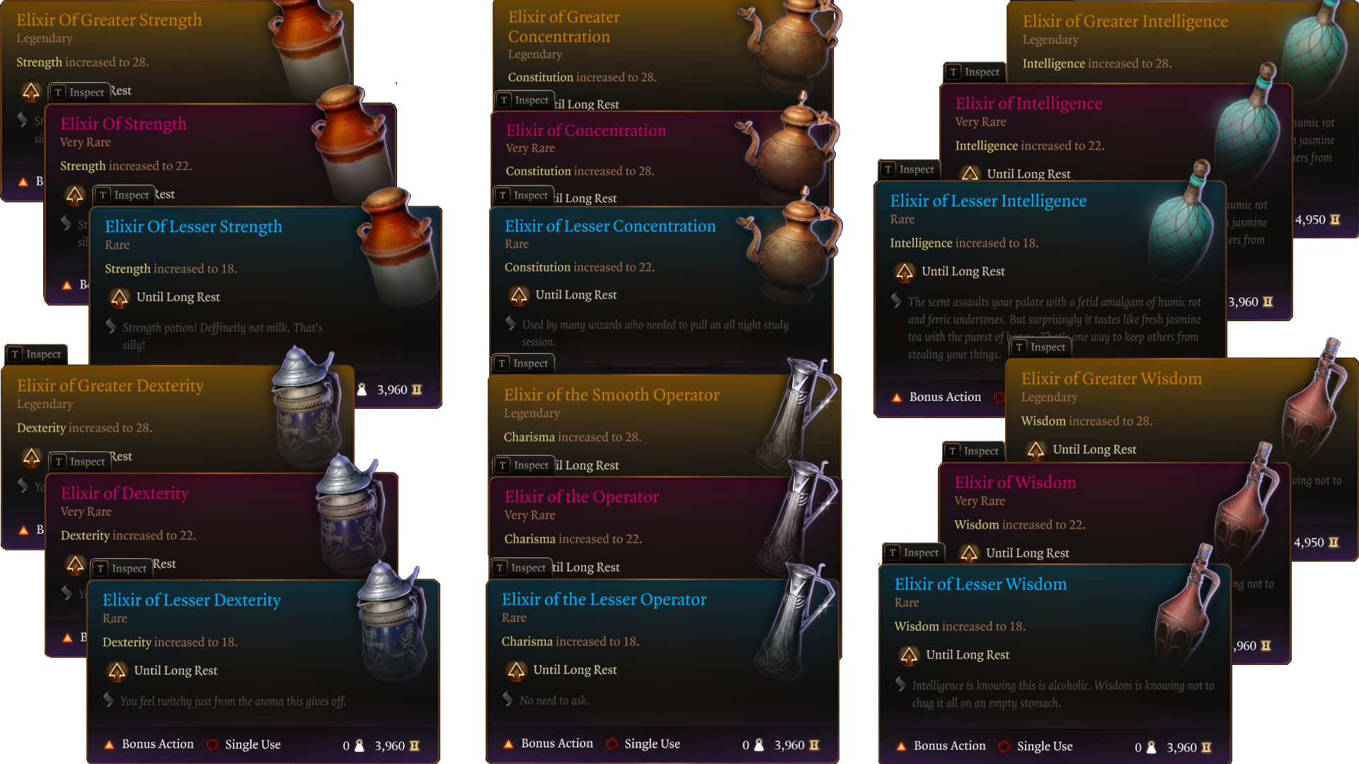 药水名称和 GUID: