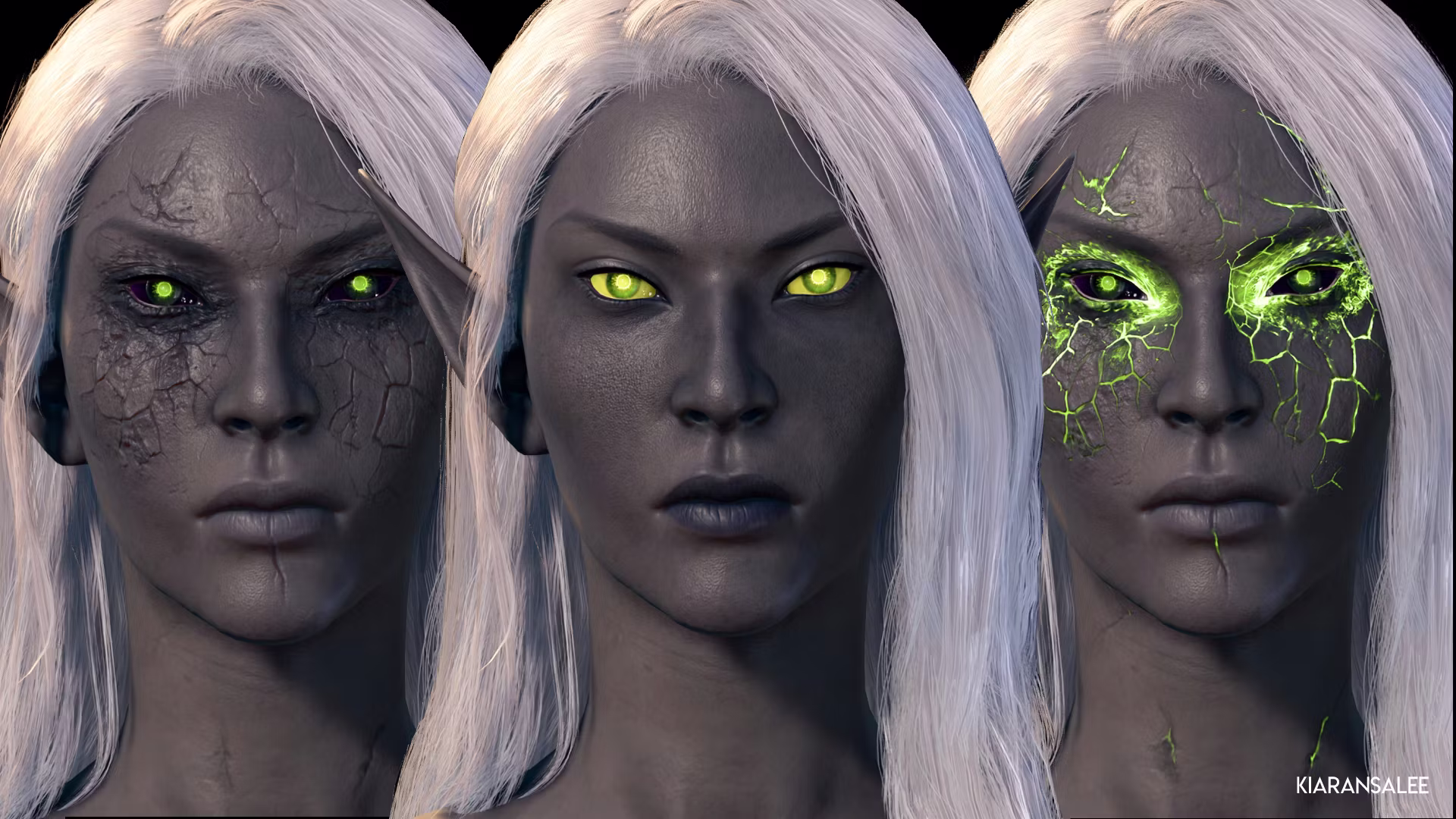 - 凯亚恩萨利的发光裂纹颜色可以通过某些修改过的瞳色来改变。