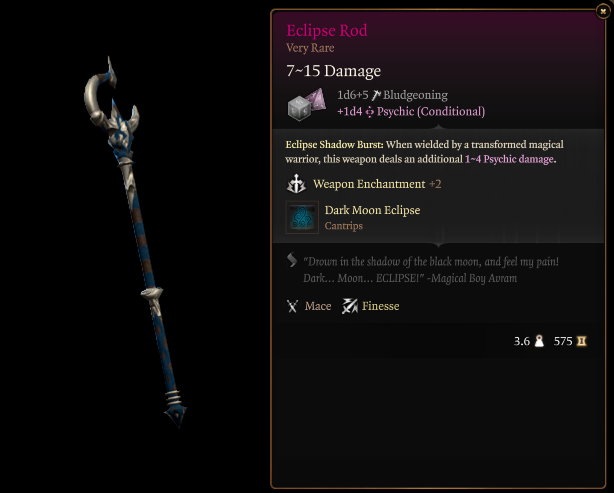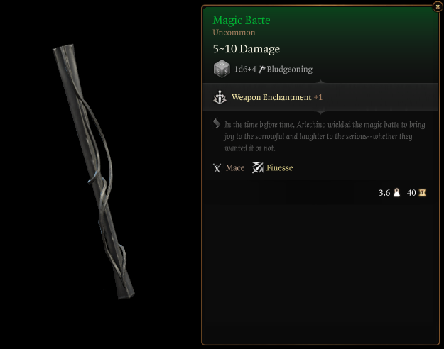 - Magic Batte 法杖: +1 法杖,无其他特性。由 Grove 和 Underdark 的 Blurg 出售。