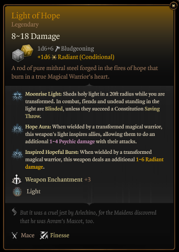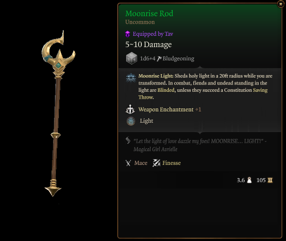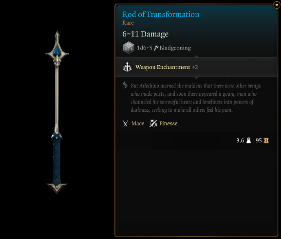 引入了一种新型武器:法杖。法杖是锤子的一种次类型,任何精通锤子或简单近战武器的角色都会自动精通法杖。与锤子一样,法杖的基础伤害为1d6钝击,但与其他锤子不同的是,法杖是灵巧武器,允许使用者在力量和敏捷中选择较高的属性用于攻击和伤害掷骰。大多数法杖具有额外的变形时生效的能力。
