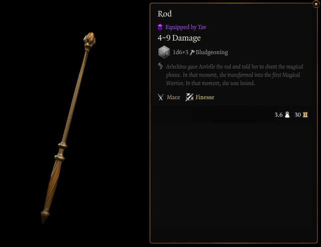 - 基础法杖: 基础型法杖。出现在教程宝箱内,由 Grove 中的 Dammon 出售,并且 Custom/Durge 角色如果游戏开始时是分身术士,则会装备一个。