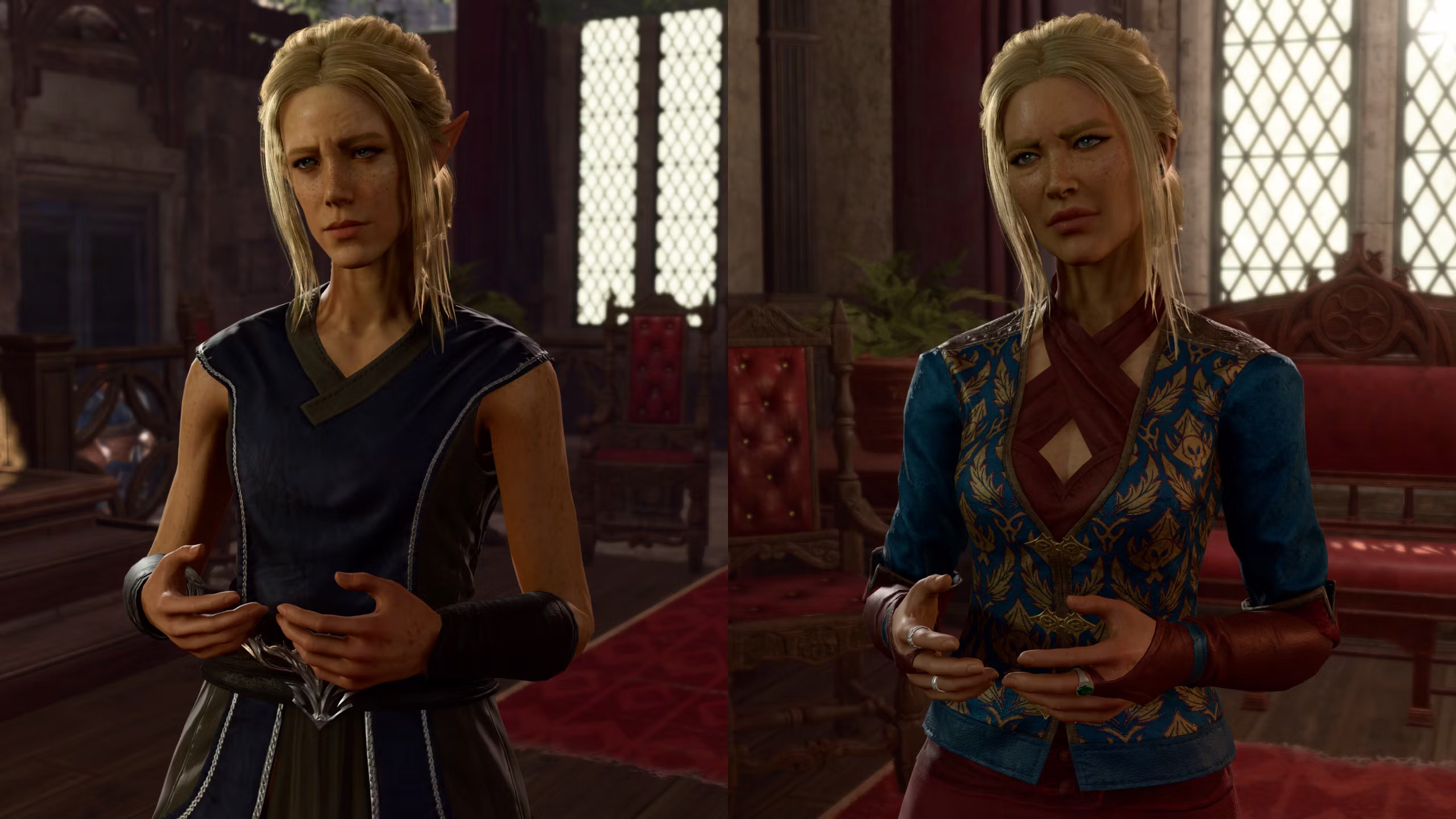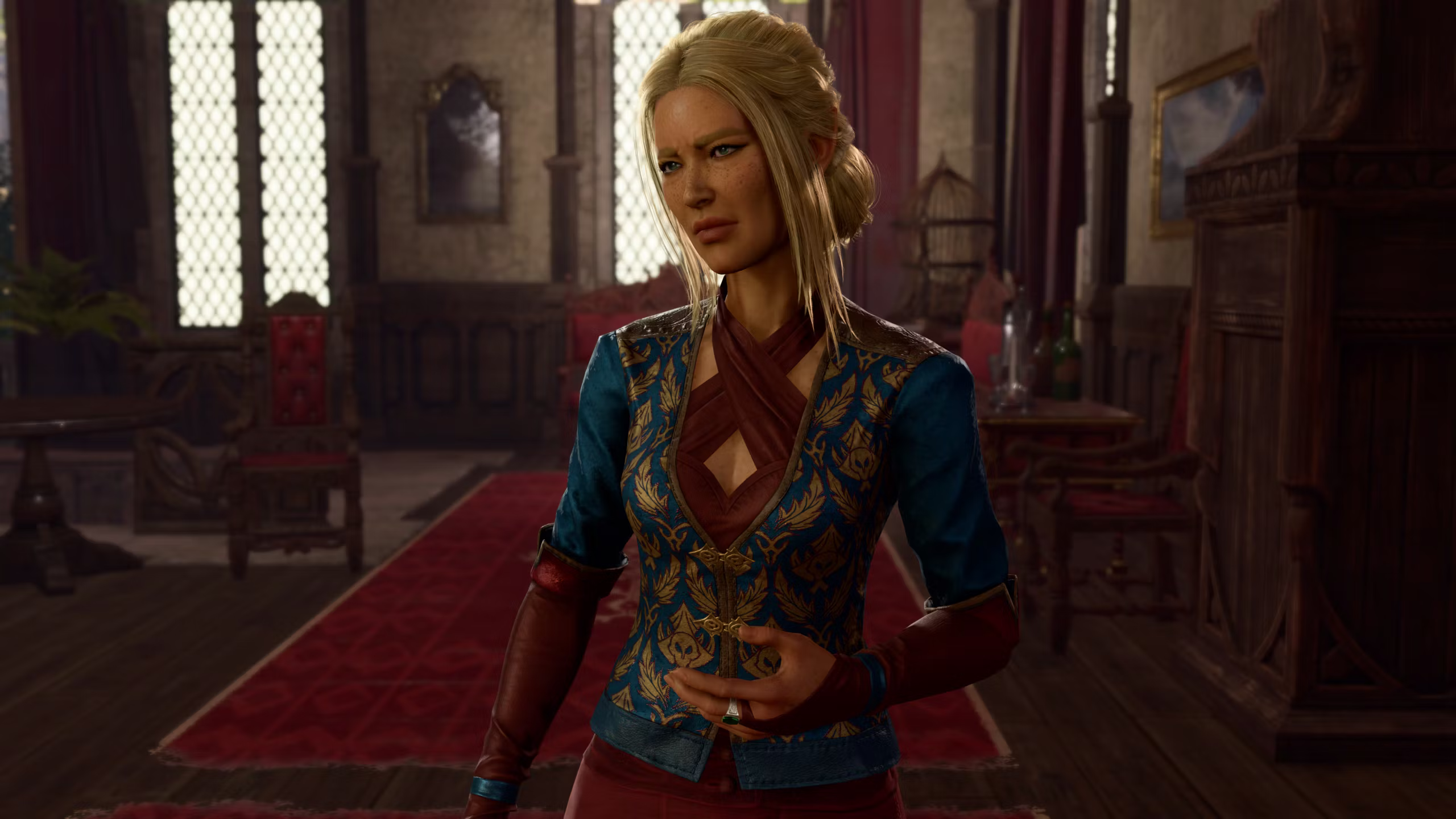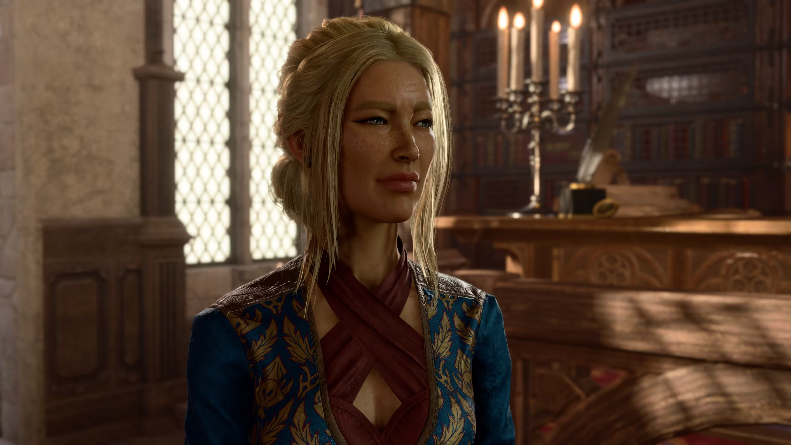 米尔伊正在为《博德之门》分部的科学教派管理前台,今天不是休闲周五。变化: 米尔伊有了新的服装和新面孔。