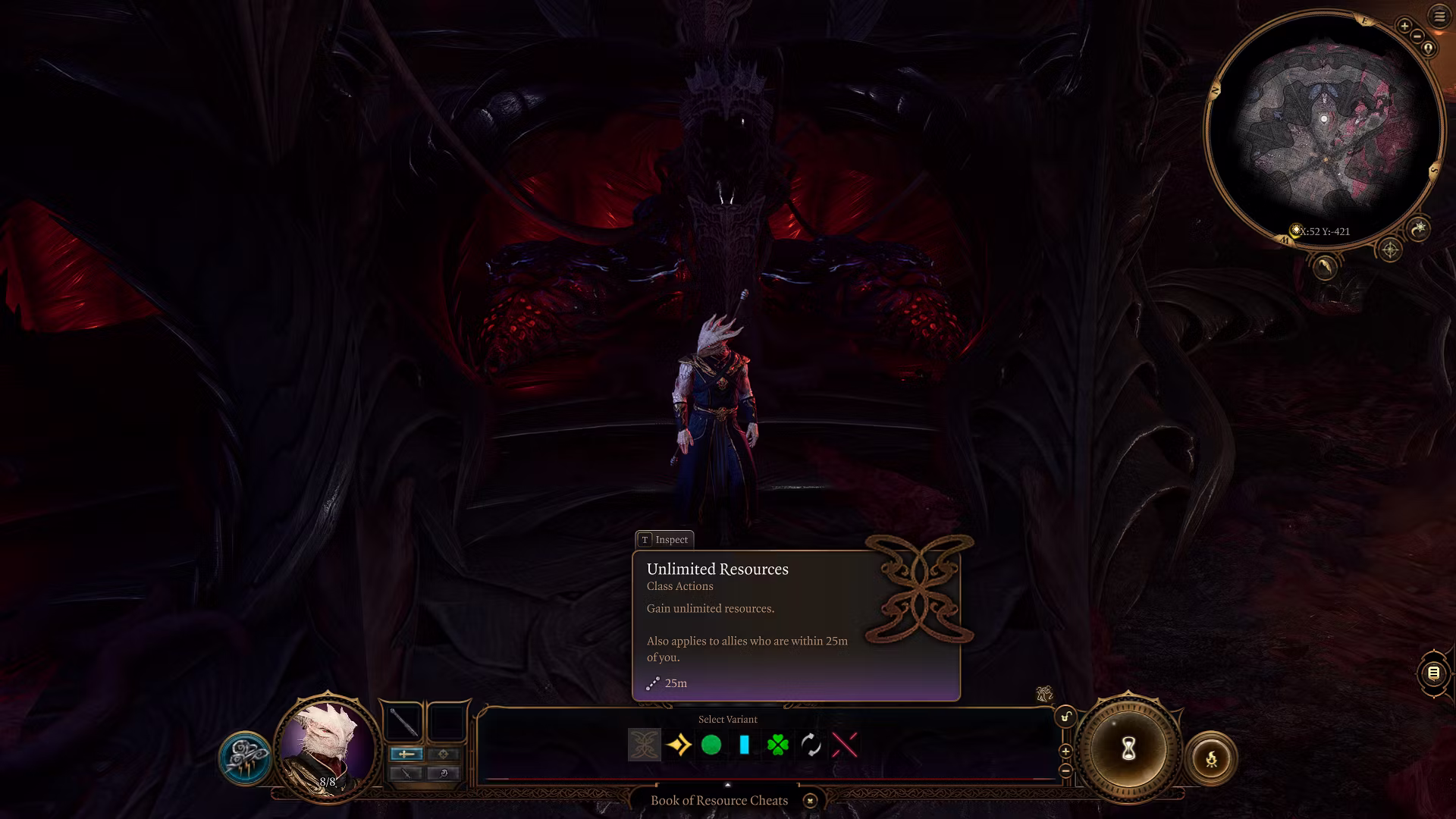 - 25米范围内的盟友也会获得这些增强效果。如果他们处于范围内,也可以用移除资源作弊法术来清除他们的效果。