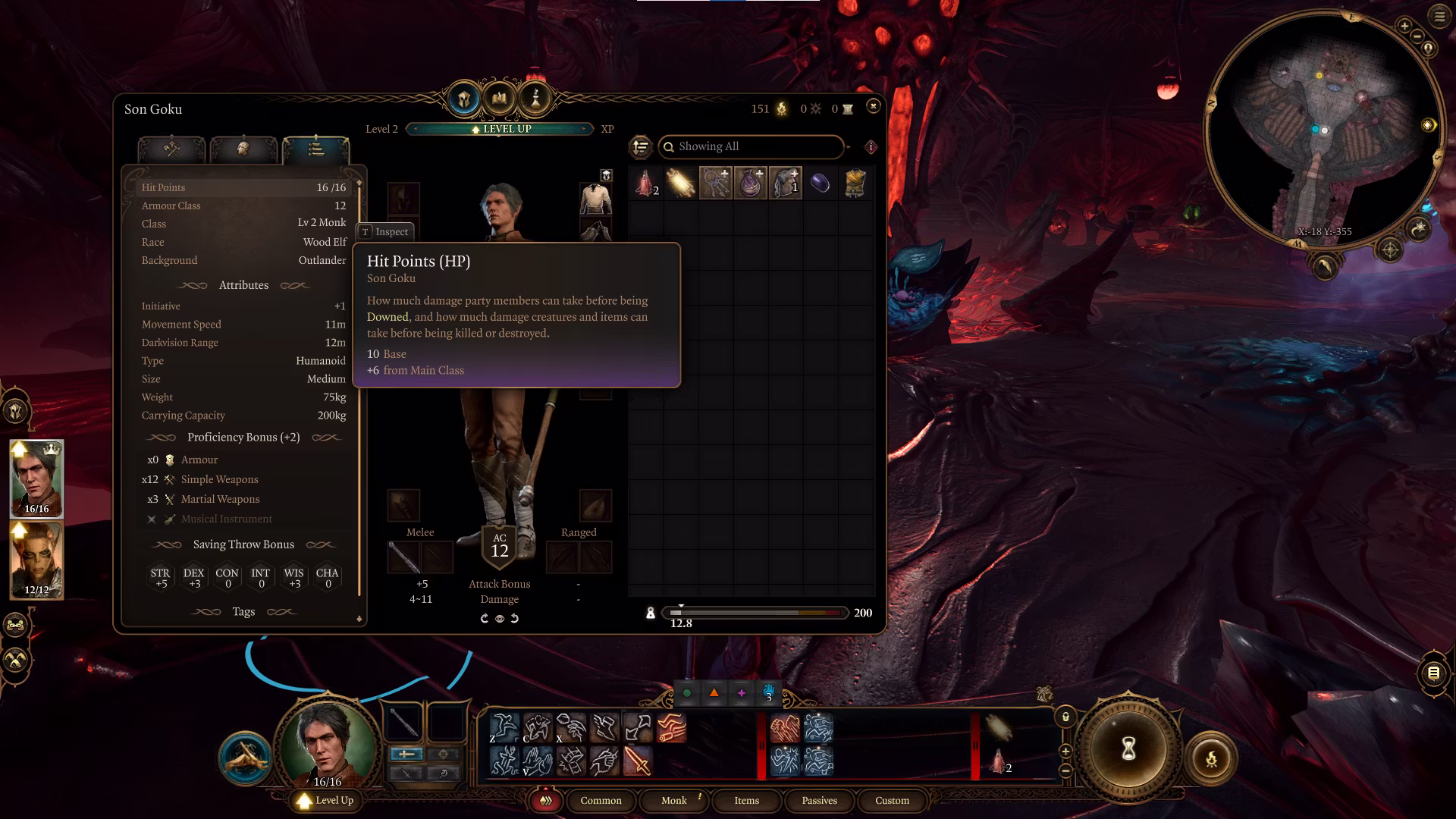 僧侣的生命值非常脆弱。他们的护甲值低于大多数近战职业,生命值池也较小。他们仅获得 d8 生命骰,而其他所有近战职业至少可以获得 d10 的生命骰。除了盗贼,盗贼同样使用 d8 生命骰,但盗贼是一个非常灵活的职业,而僧侣在没有气力时并不那么灵活。