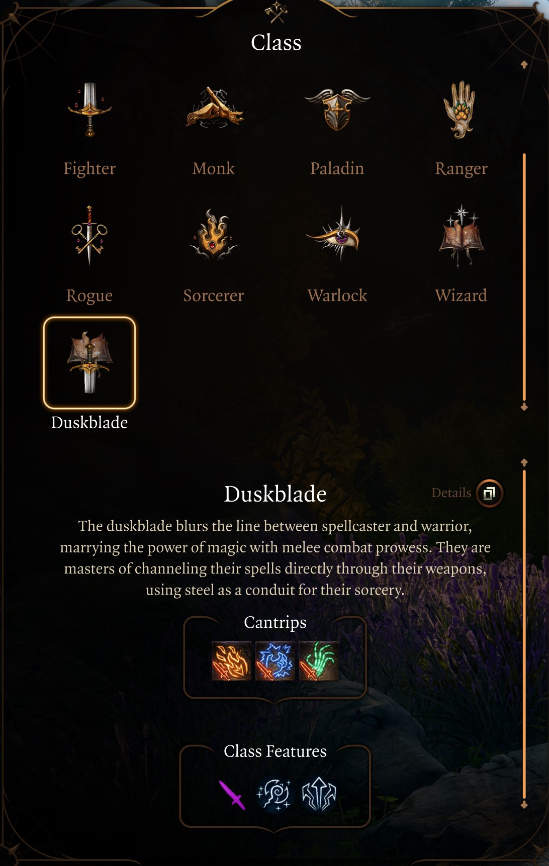 基于3版原版职业,为D&D5e和《博德之门3》重新设计!该职业的核心魅力在于能够将任何需要法术攻击检定的法术或法术位作为近战攻击释放,使暮刃具备极高的爆发伤害潜力。不过他们的生存能力稍弱一些。目前这个职业有三个完全可玩的职业分支,并且可以使用大约十二种特殊法术来配合其独特的奥术通道机制!