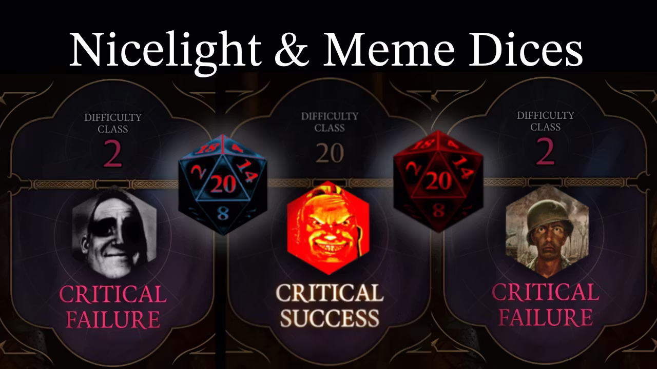 – Incredible Dice: 外观与NiceLight相同,但在临界成功或失败时显示超能先生梗(缩略图!)