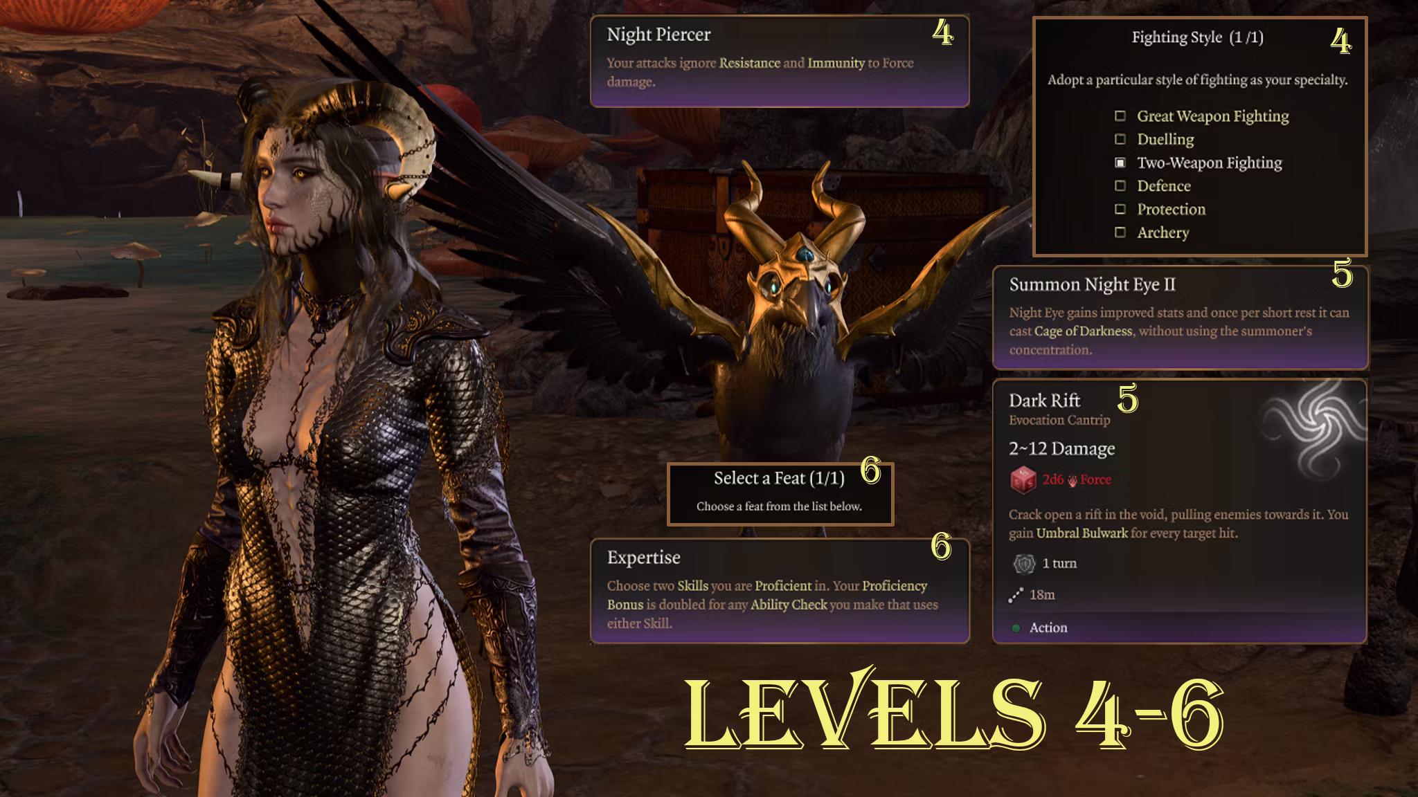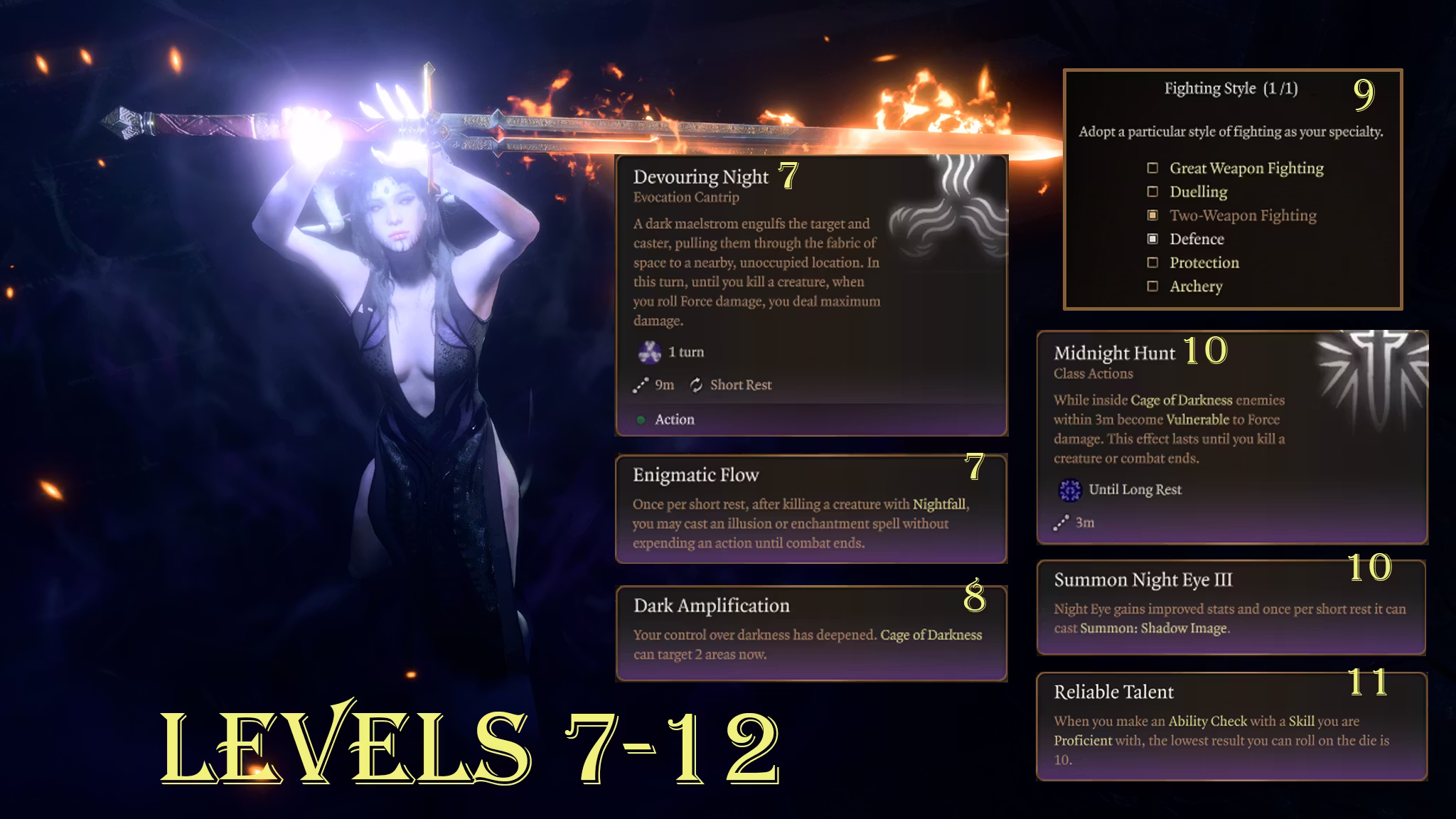 夜行者的主要特点是感觉:一个充满边缘感、疏离感和掌控力的职业,主题是阴影与黑暗。我专注于背景故事和视觉效果,以提供沉浸式体验。这种职业风格也支持这一核心幻想。