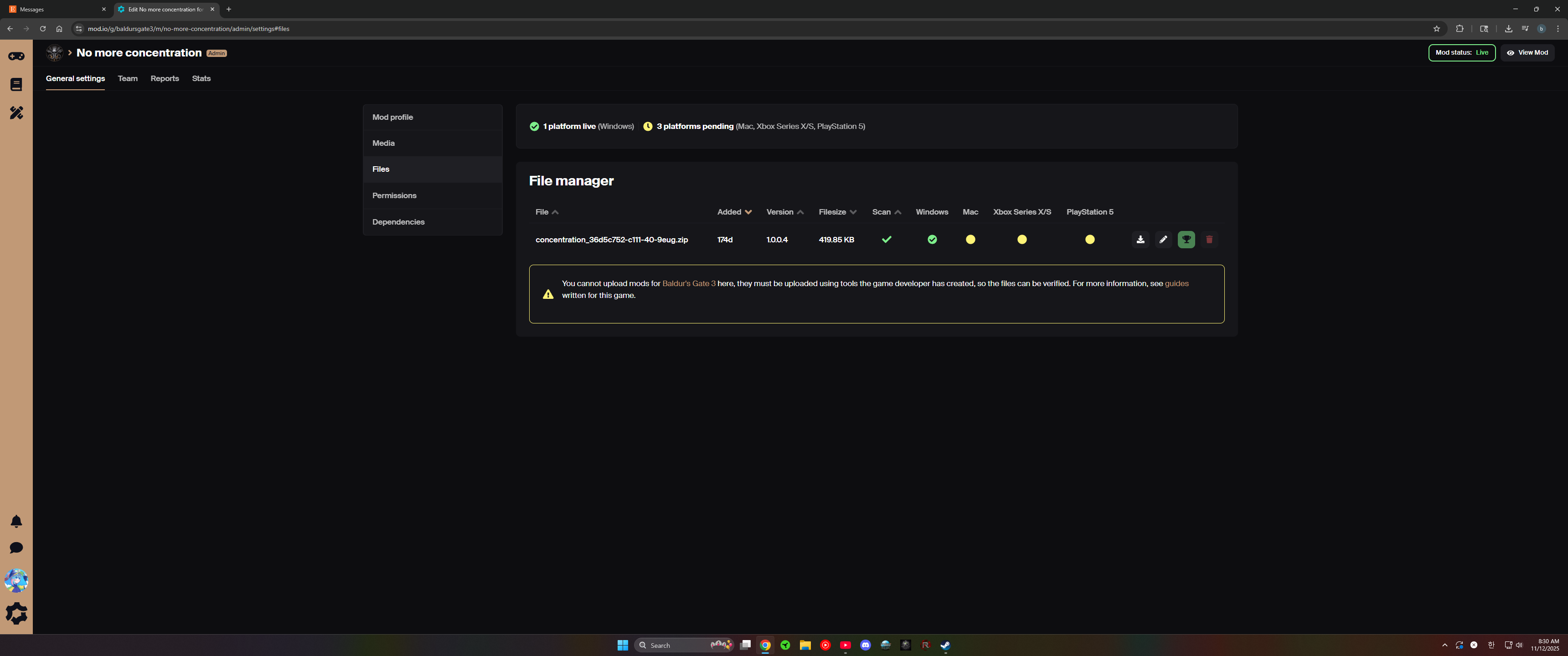 抱歉,由于发布这些内容需要管理员权限,我无法在 Mac 和主机平台上发布此模组。