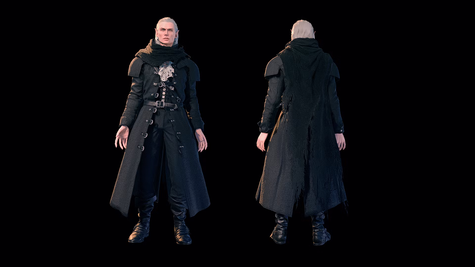 这套装备受到我的 Durge 的启发,让人想起他最喜欢的一种在午夜后的空旷城市街道上行走的装扮。基于 Dettlaff 的服装设计。支持人类/精灵/杜沃/半精灵/ Tieflings 种族。可以染色,并且与 变形模组兼容。