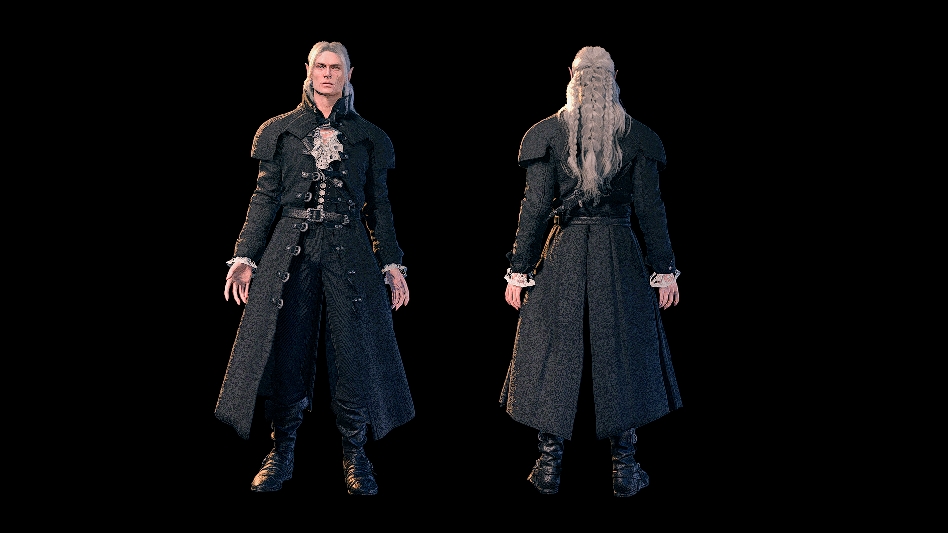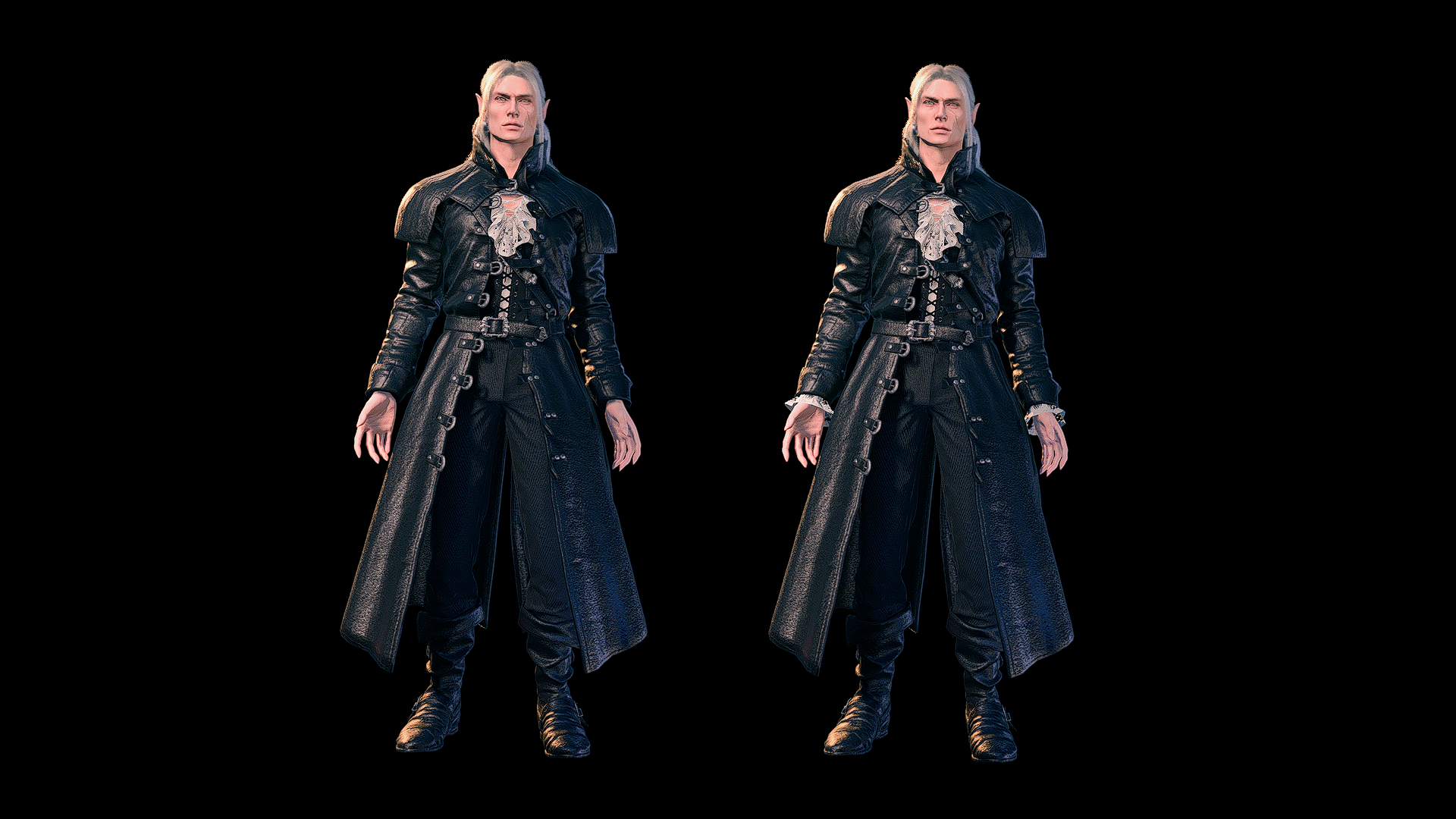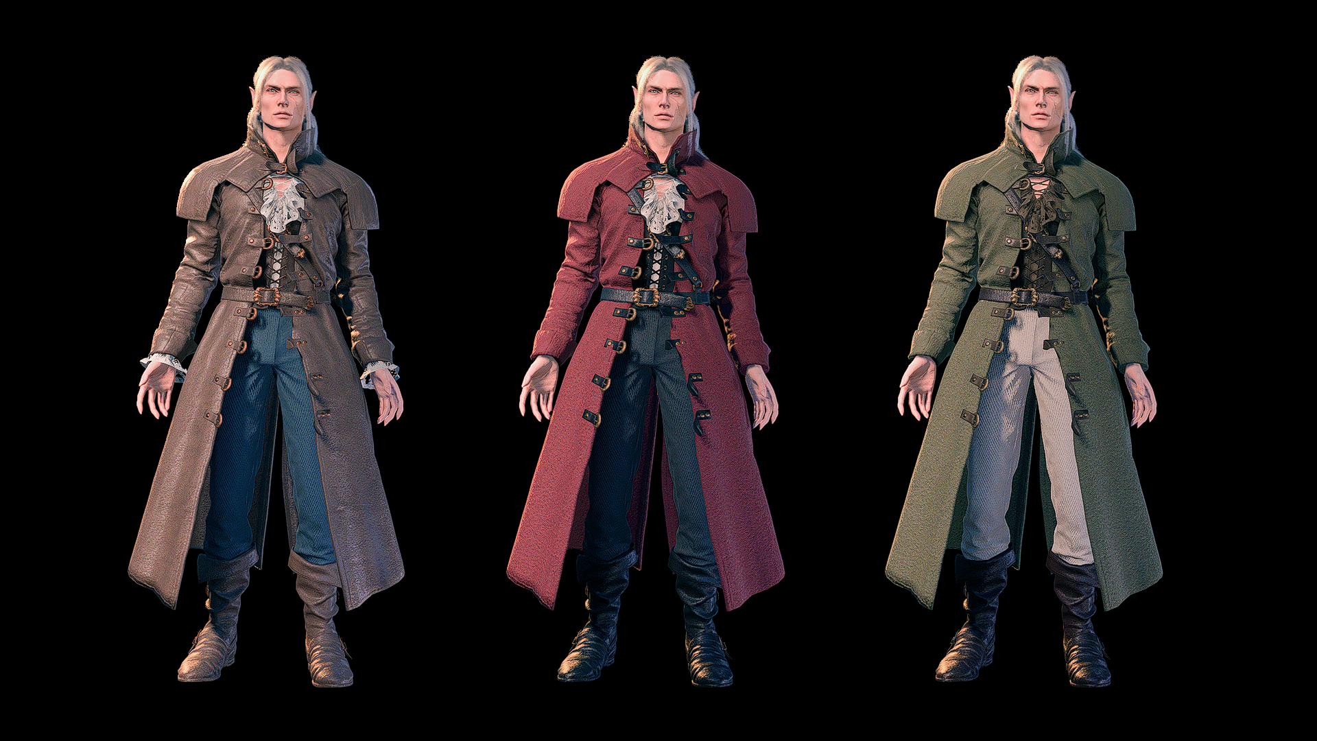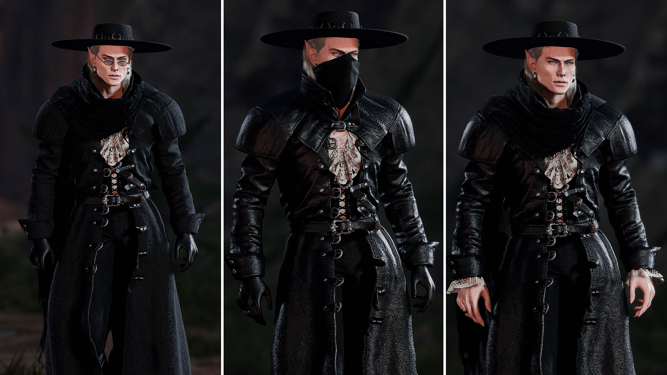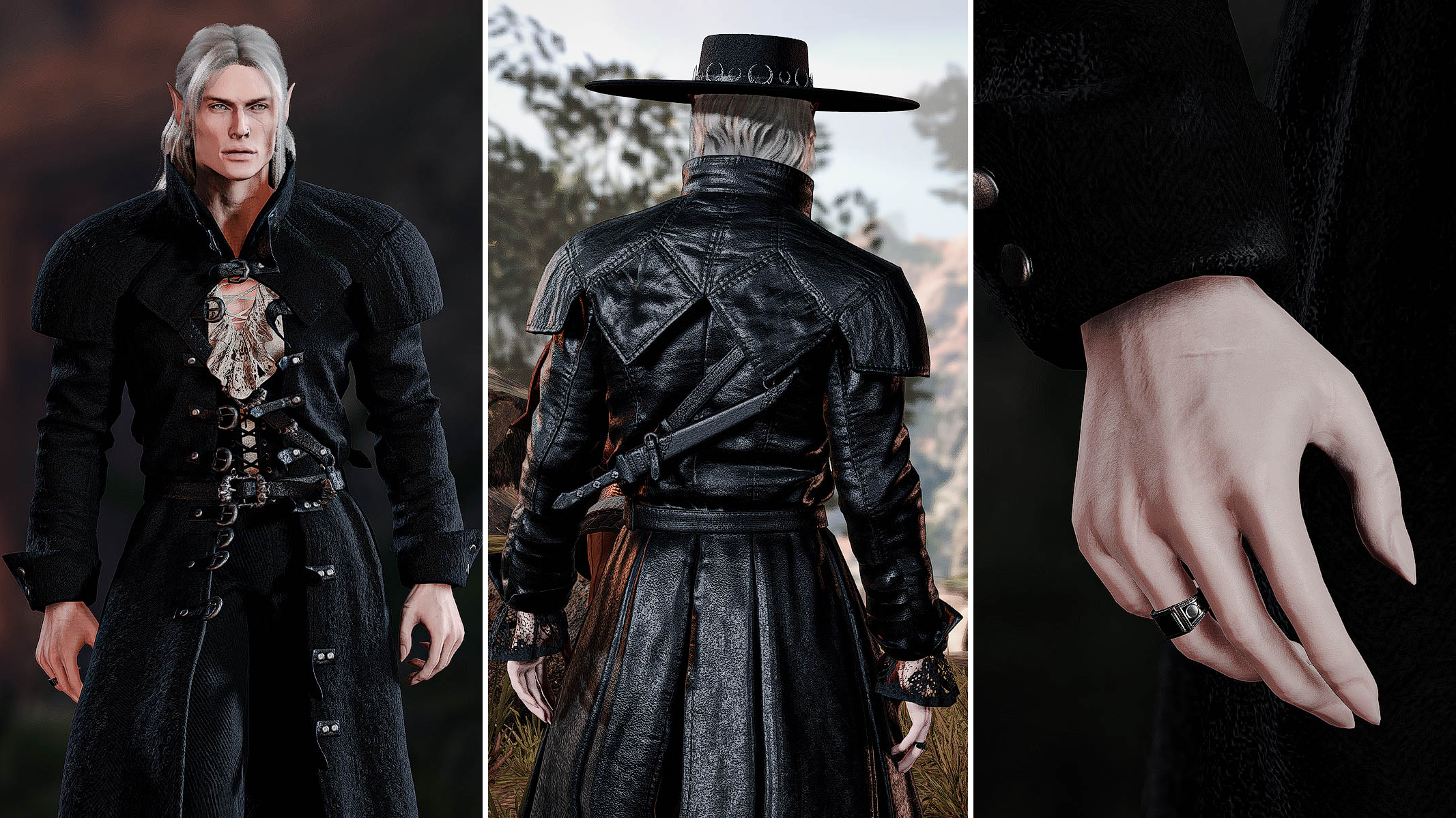 这套装备受到我的 Durge 的启发,让人想起他最喜欢的一种在午夜后的空旷城市街道上行走的装扮。基于 Dettlaff 的服装设计。支持人类/精灵/杜沃/半精灵/ Tieflings 种族。可以染色,并且与 变形模组兼容。