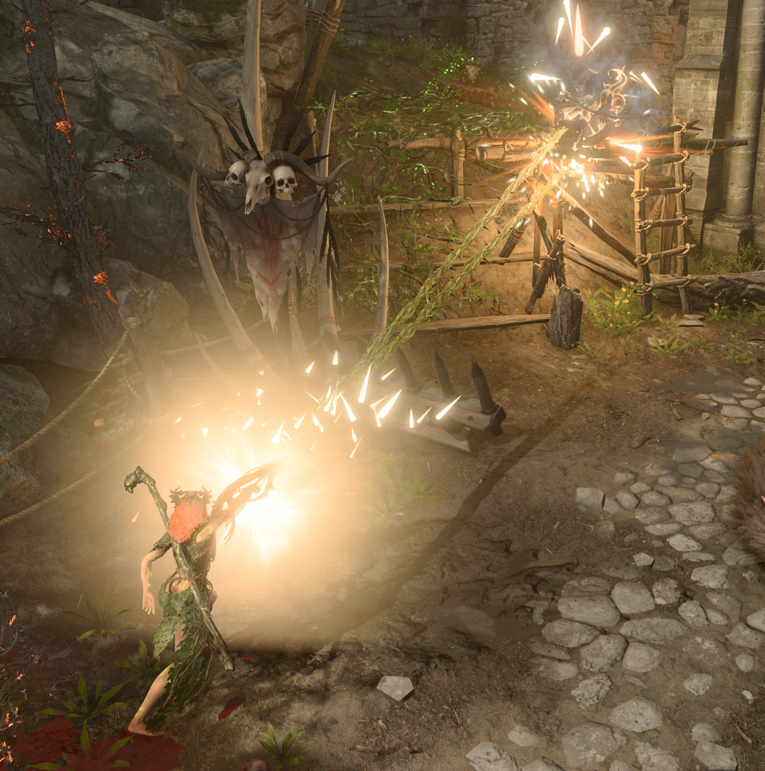 除了召唤盟友之外,你还拥有一系列以藤蔓为主题的进攻性法术,同样由丛林符文驱动。这些法术强调对敌人的控制能力,在你的召唤生物与敌人战斗时,你能够阻碍敌人。