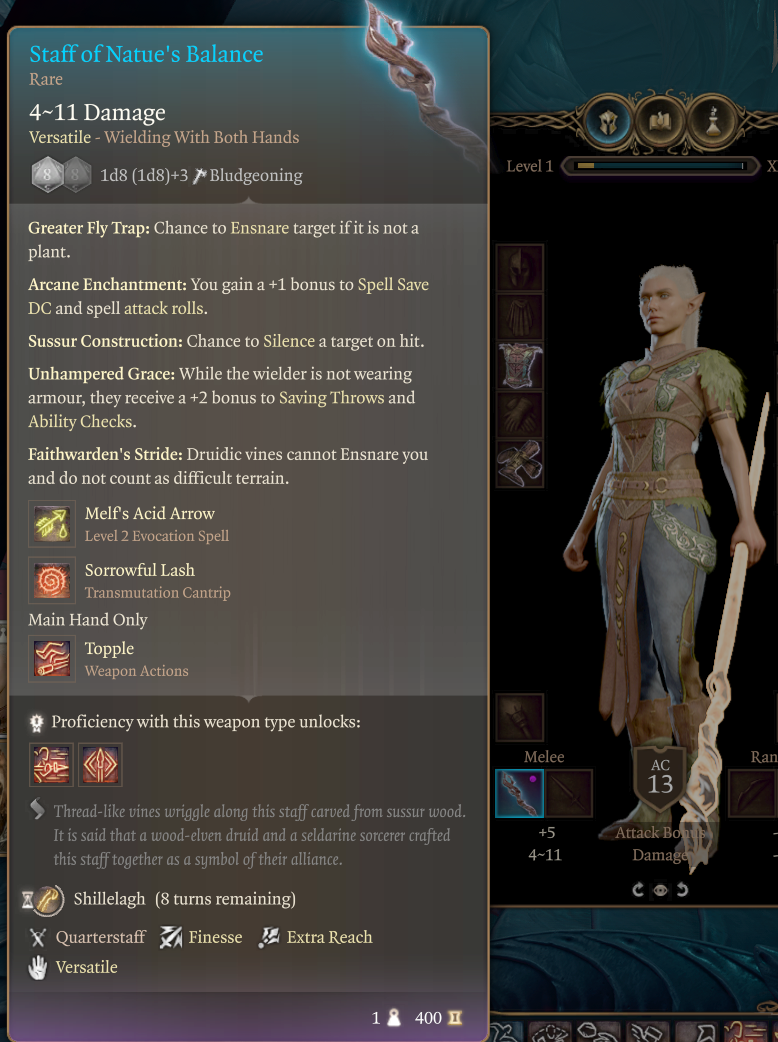 无法决定你的第一幕德鲁伊是否要使用科瑞隆的恩典、梅尔夫的第一根法杖、自然的陷阱、哀伤、苍白橡树或苏斯武器?我来帮你解决!我已经将所有这些武器的能力整合到一根单一的德鲁伊法杖中了!