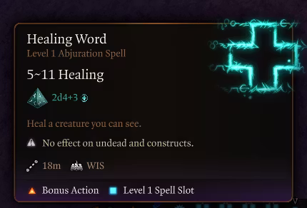 治愈伤口:2d8,可升级为2d8
