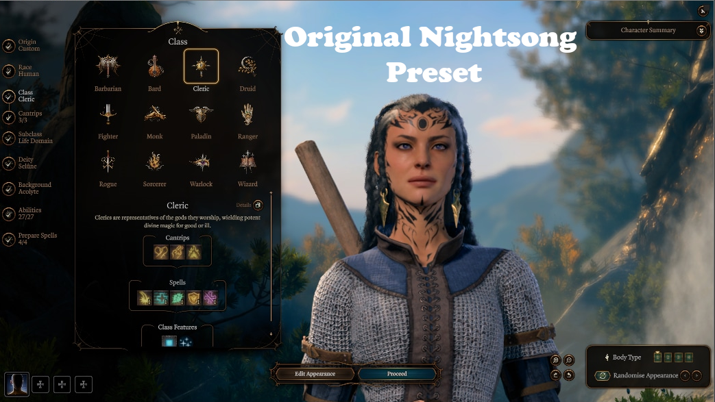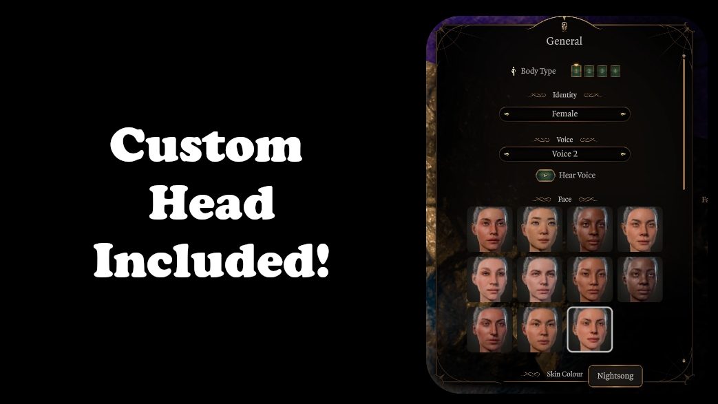 扮演被游戏最终版本删除的原版夜歌角色艾琳·银血!包含她的原始数据挖掘面部和标志性女祭司服装作为营地服装。替换人类体型1。