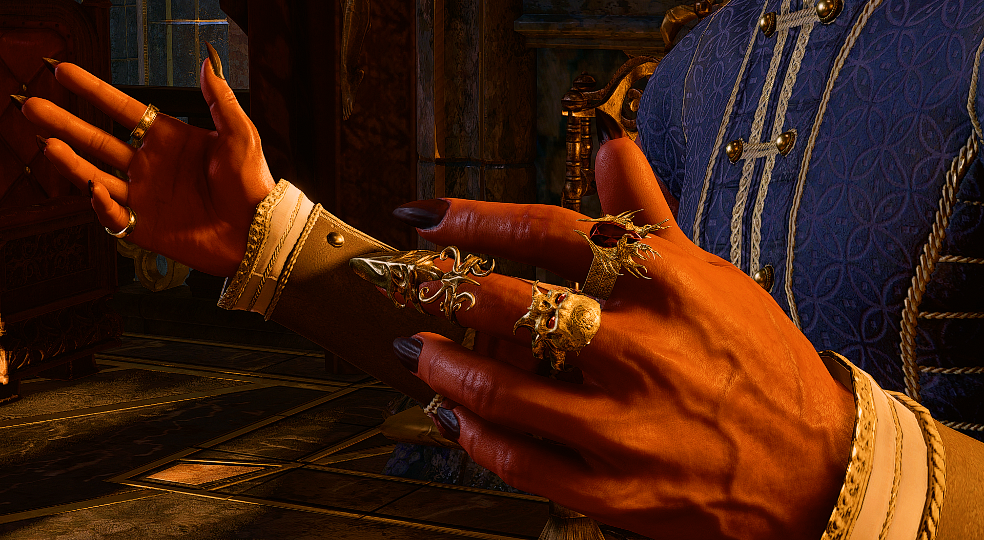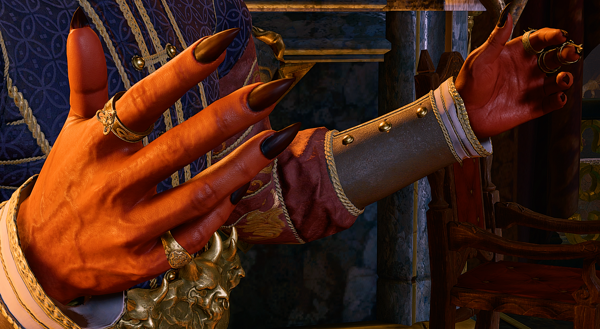 这个模组最初是由拉斐尔粉丝 Alisa 思考拉斐尔穿上金色腰带的样子开始的,后来我花了一周的时间为他制作珠宝。部分服装(戒指)的设计灵感来自拉斐尔的一幅肖像画,而金色耳环则是因为我喜欢他的尖耳朵,并认为它们值得一些闪亮的东西。