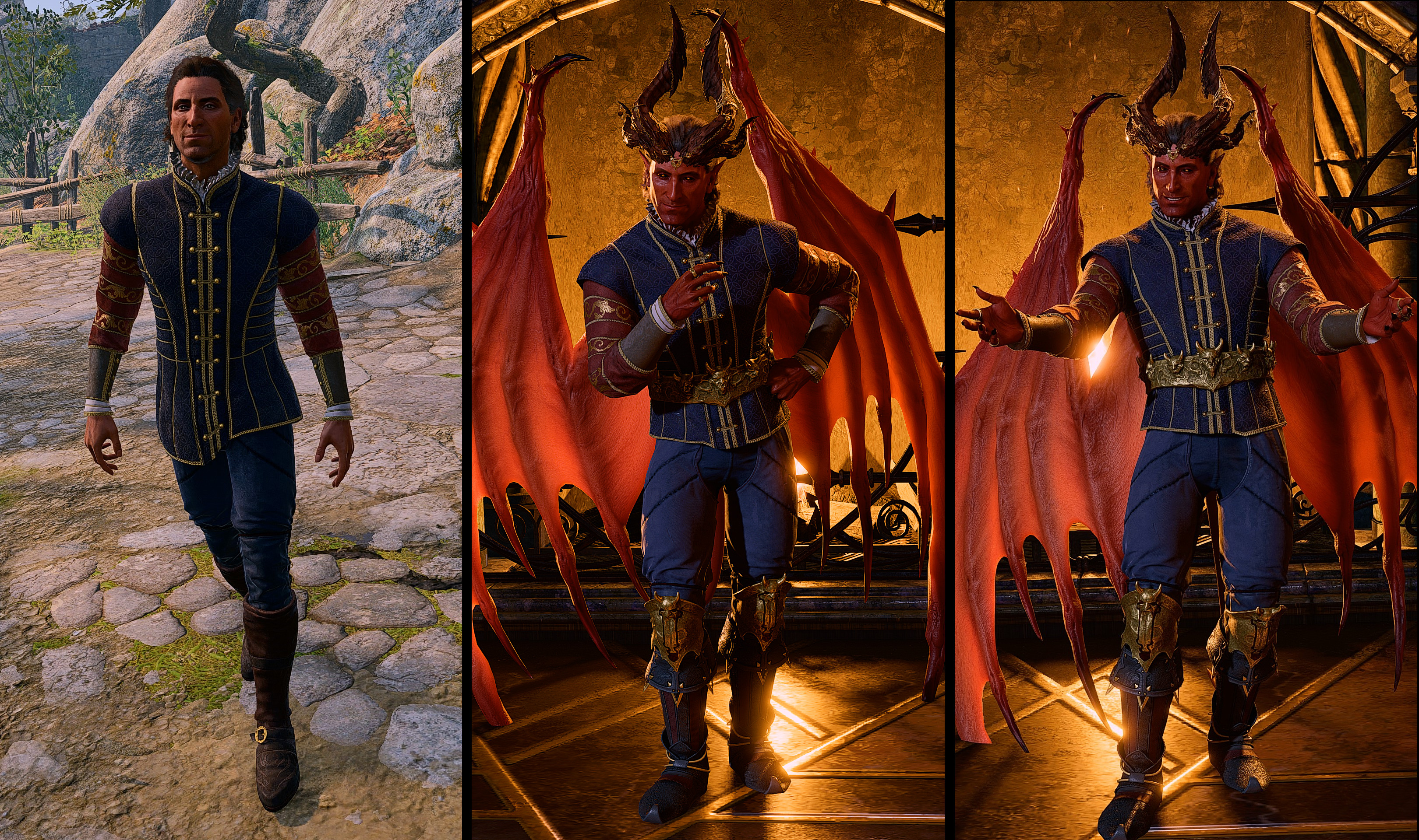 - 将他在两种形态下的银色配饰改为金色(腰带、护膝、纽扣、皮带扣和靴边)