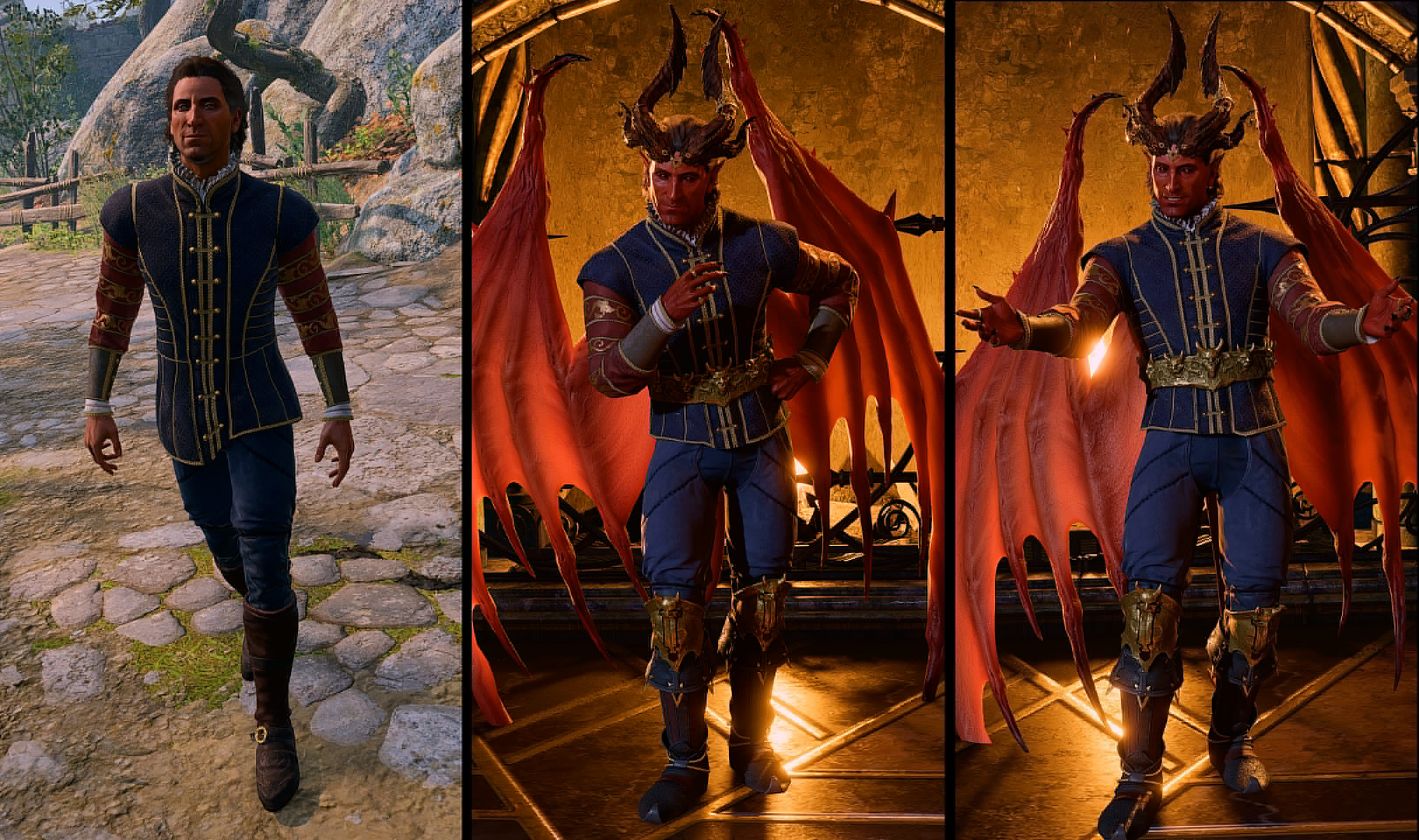 还有一个名为“如此诱惑”的变体 在此链接中,它添加了上述所有内容,并且还打开了他的双排扣外套并为两种形态增加了项链。