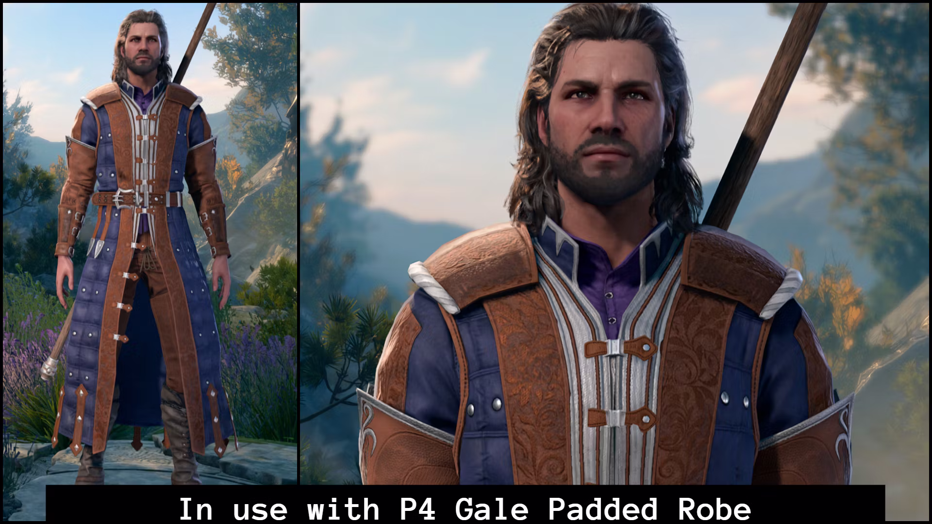 它可以在默认的长袍上单独使用,也可以与其他保留原服装颜色的模组一起使用。例如,在第二张图片中展示了与我的 P4 加尔加垫长袍 模组一起使用的场景。
