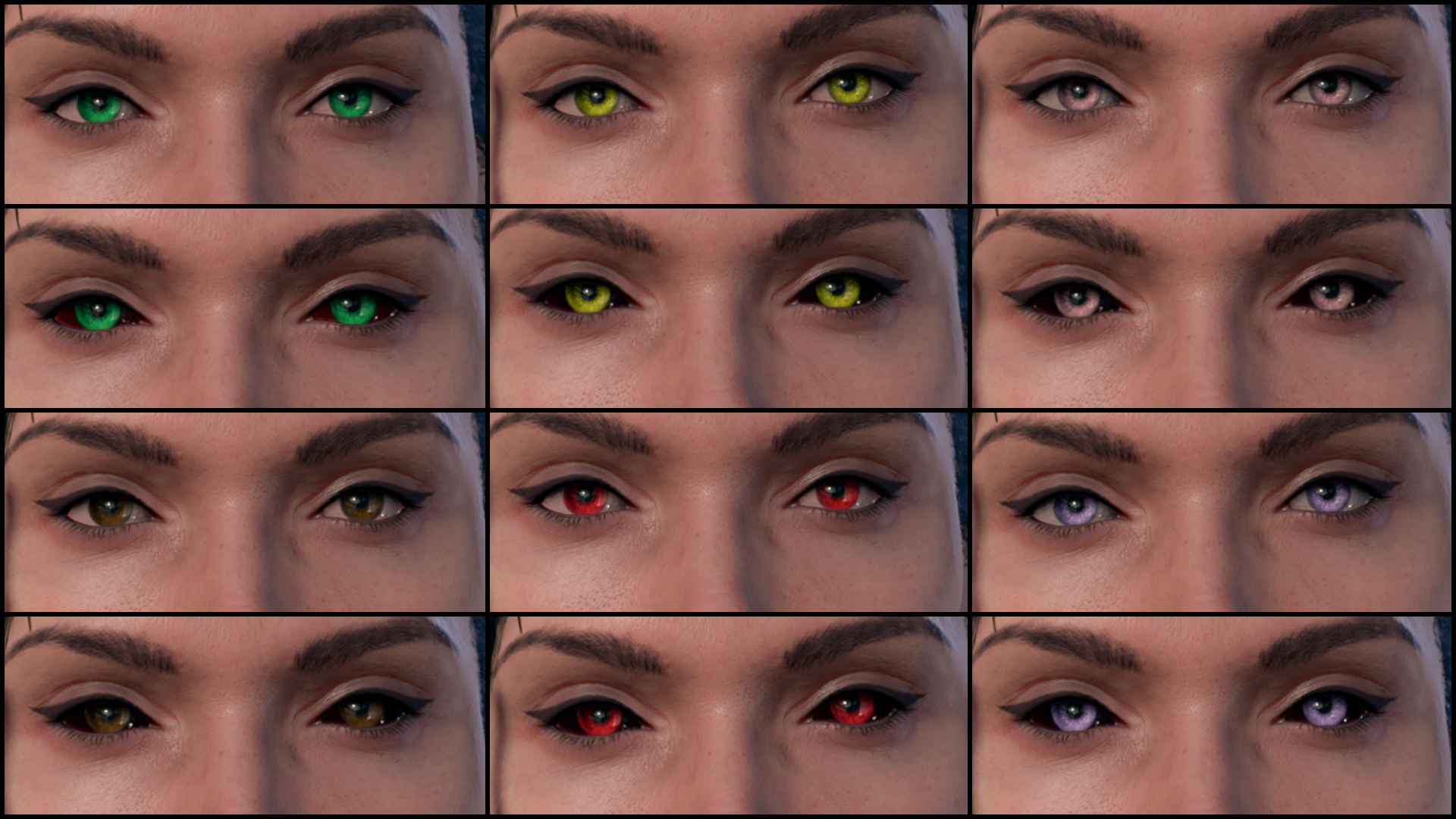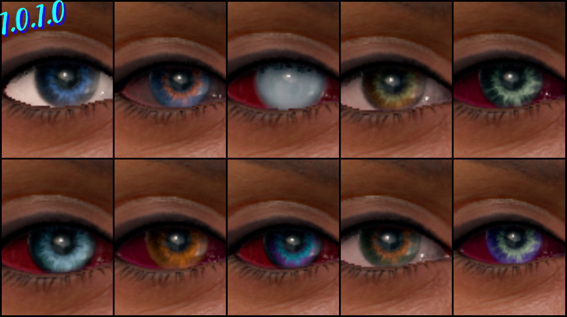 此模组允许玩家自定义角色的眼睛颜色。目前,眼睛颜色可以在“显示所有选项”中找到。该模组为 Tiefling 和 Dragonborn 提供了每只眼睛的发光效果。