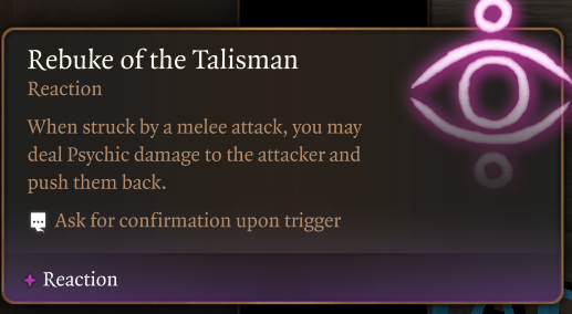 携带者还可以使用他们的反应来斥退攻击者,造成心灵伤害并将他们推开。