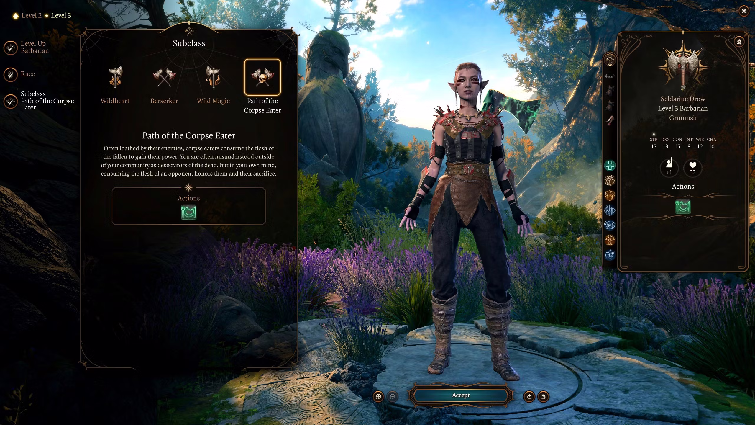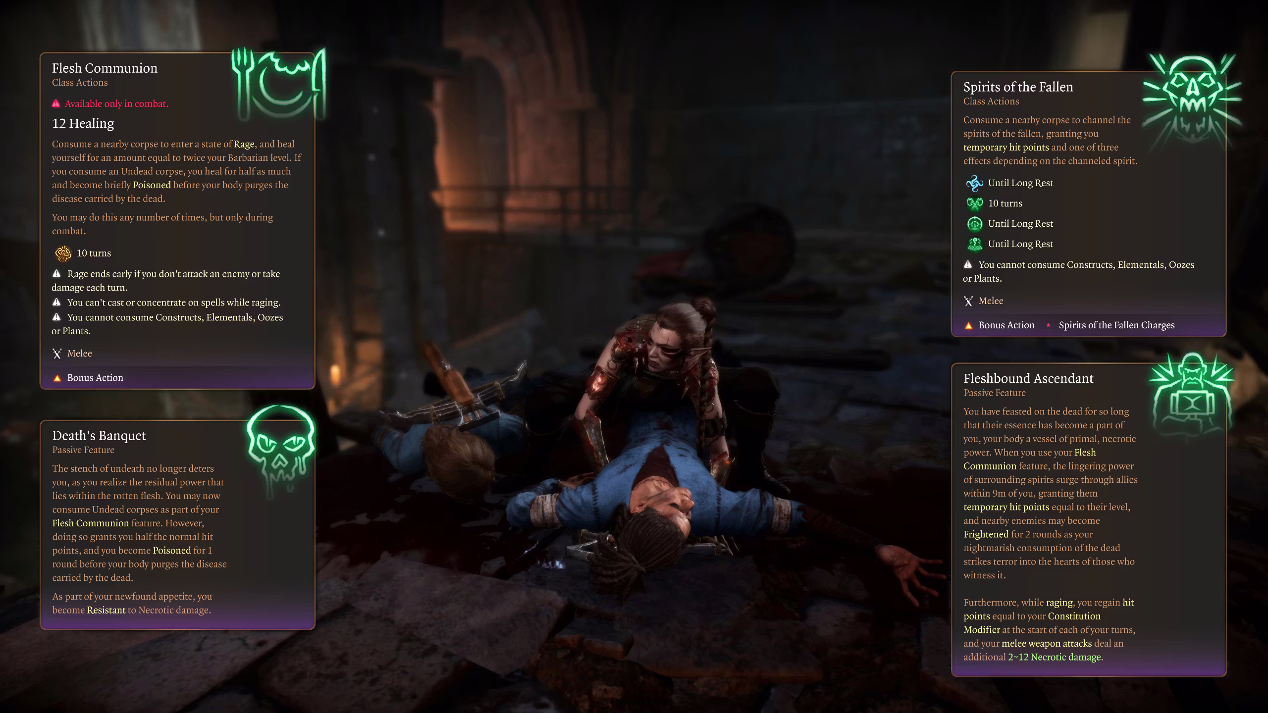 Path of the Corpse Eater Barbarian Subclass 是一个为《博德之门3》中的野蛮人角色提供全新玩法的模组。它引入了独特的食尸者技能树,使玩家能够通过食用尸体来获得强大的增益效果。