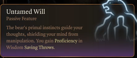 这些继承了熊灵遗产的人发现,当他们愤怒时会唤醒一种既原始又具有保护性的力量。通过在野外进行深入冥想并接受自己的双重本性,他们学会了将他们的狂怒转化为祖先守护者的智慧。随着实力的增长,熊灵的力量变得更加强大,赋予他们超自然的强大力量,并能够以古老形式的一部分出现。