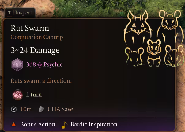 Pied Piper 主题的吟游诗人副职业,基于老鼠学院。包含定制的能力、效果和以老鼠为主题的视觉特效,为幻想世界增添风味。在3级、5级、8级和11级获得子类特性。暂无计划提供12级以上的进阶内容,未来可能会添加更多能力,欢迎提出建议。