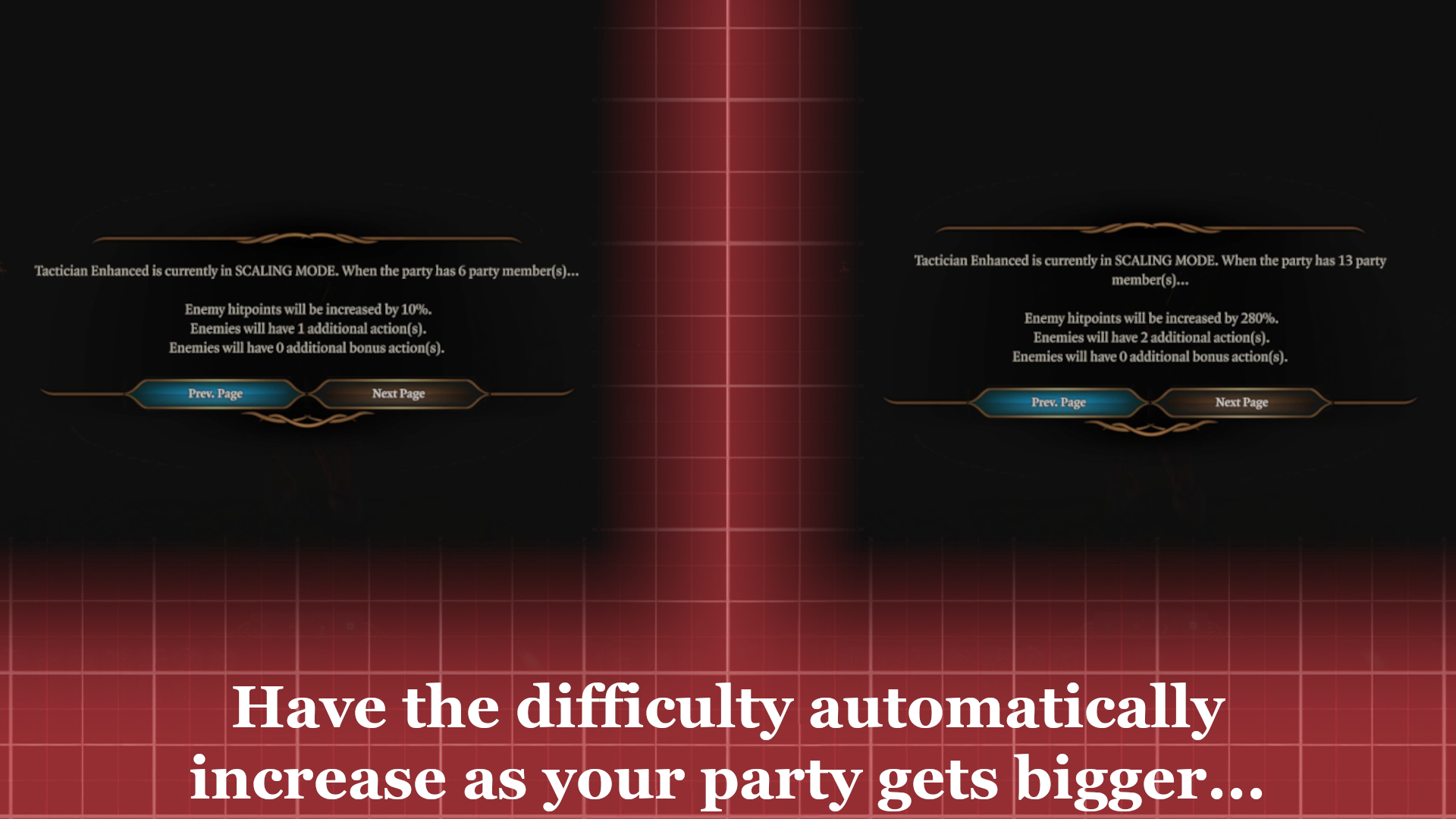 增加多种方式使游戏更具挑战性,同时允许敌人随着你的队伍变强而自动变得更强大。此模组非常自定义化,所有设置都可以在游戏中进行配置!