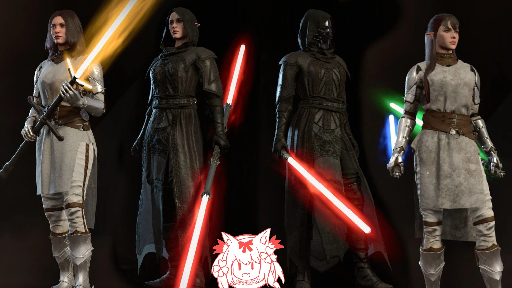 《星球大战》武器包 – 达斯和天行者套装的中文翻译。添加了2套拥有不同技能的依据角色等级逐渐解锁新技能的5件套护甲,1套达斯的营地服装,16把拥有不同技能的依据角色等级逐渐解锁新技能的可自由更换刀刃颜色的光剑,和2把拥有不同技能的依据角色等级逐渐解锁新技能的可自由染色的等离子束爆能枪。其中光剑分为达斯标准光剑、绝地标准光剑、双头光剑、逆刃光剑和十字护手光剑,不但外观不同,每种的技能也都是独特的。护甲方面达斯和天行者的护甲共用同一套成长模板,因此除了外观区别之外这两套的能力是一样的。