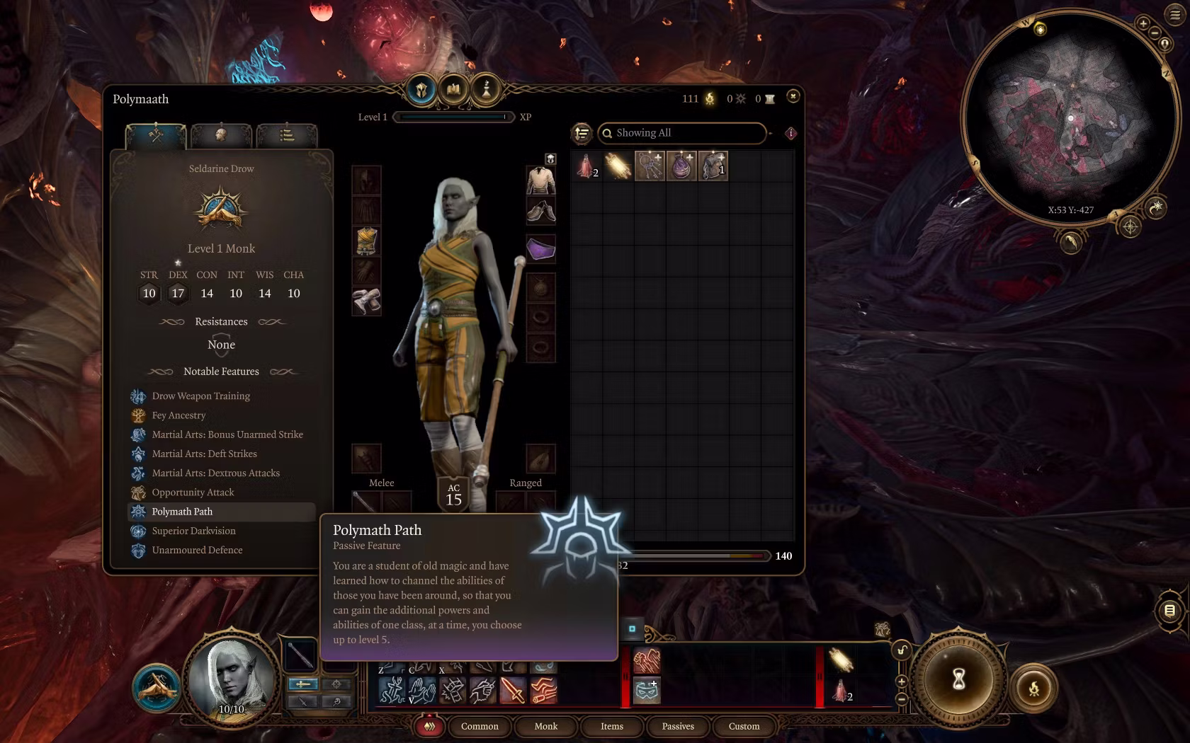 - 获得吟游诗人的属性(力量 8,体质 12,敏捷 16,智力 9,智慧 13,魅力 10)