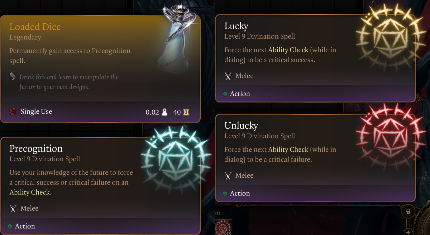添加了一种药水,赋予“预知术”法术。此法术可以用于在对话检查中强制获得临界成功(自然20)或临界失败(自然1)。