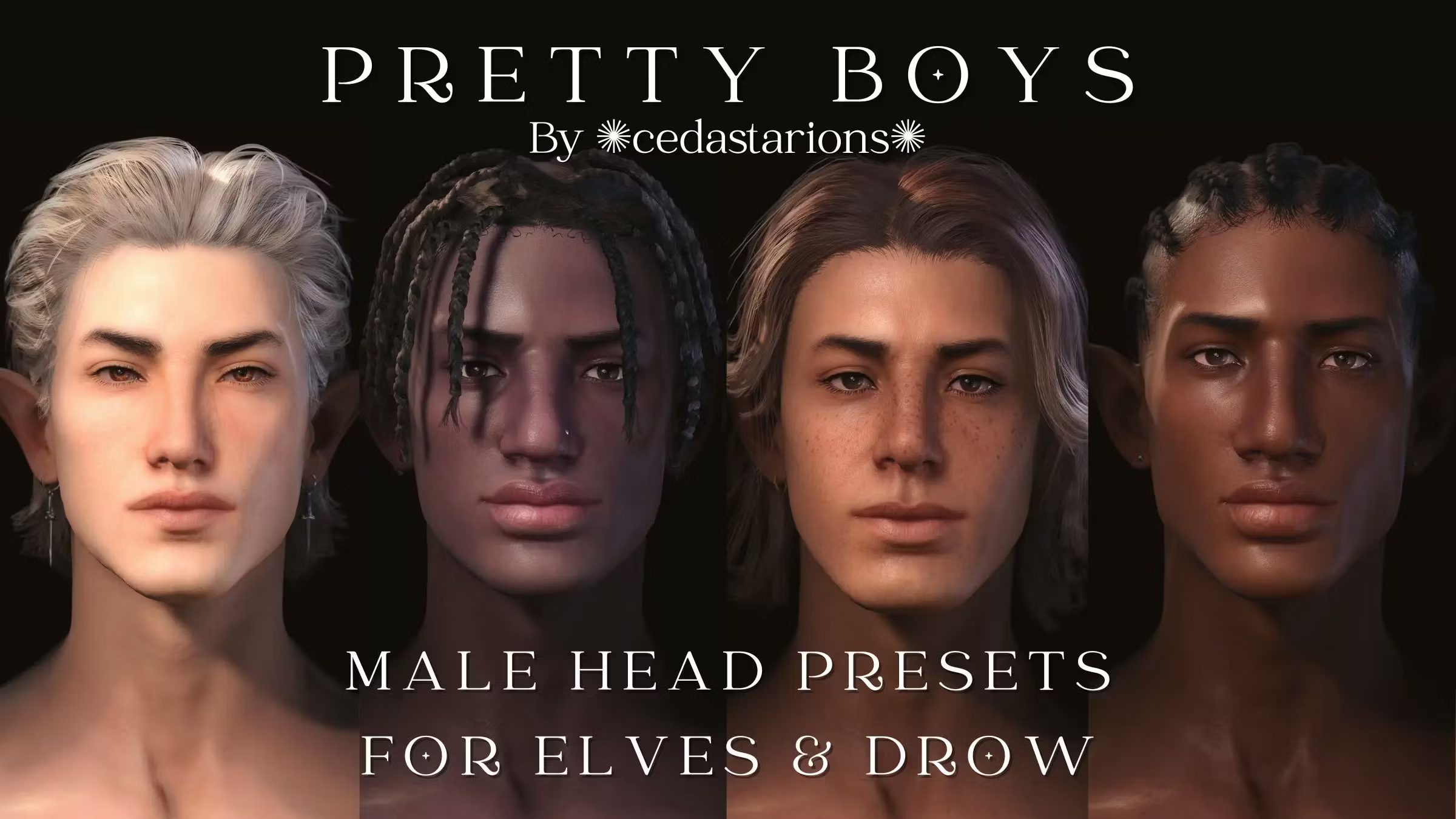 精灵和暗精灵的男性头部预设 – 美少年版。