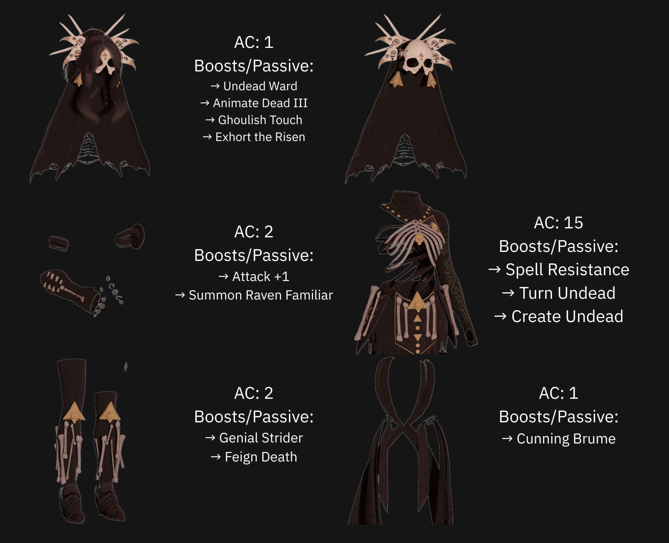→ 添加了一套以 Myrkul 神灵为主题的独特套装,包括头饰、手套、靴子和斗篷,并且还有一个稍微低调的变体。