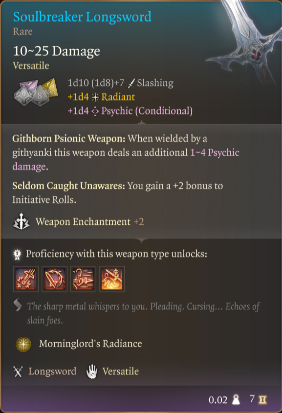 - 具有敏捷属性的单手吉他安基长剑,从普通(+0)到稀有(+2)