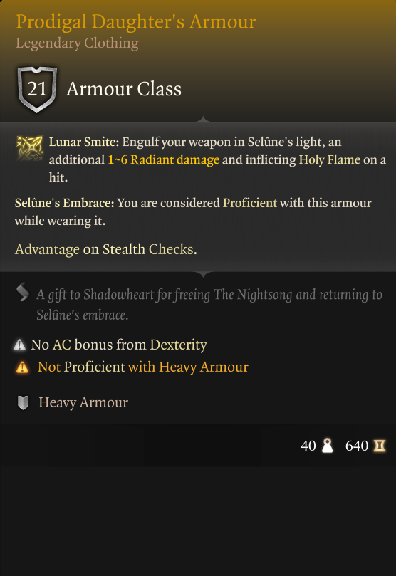 包含艾斯塔里昂、卡尔查、莱泽尔、影之心和威尔的终局装备。所有物品可以在第三幕的商人中找到。