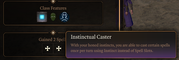 本能施法者 – 使用磨练过的本能,您可以在每回合使用一次特定的法术,而不是消耗法术位。
