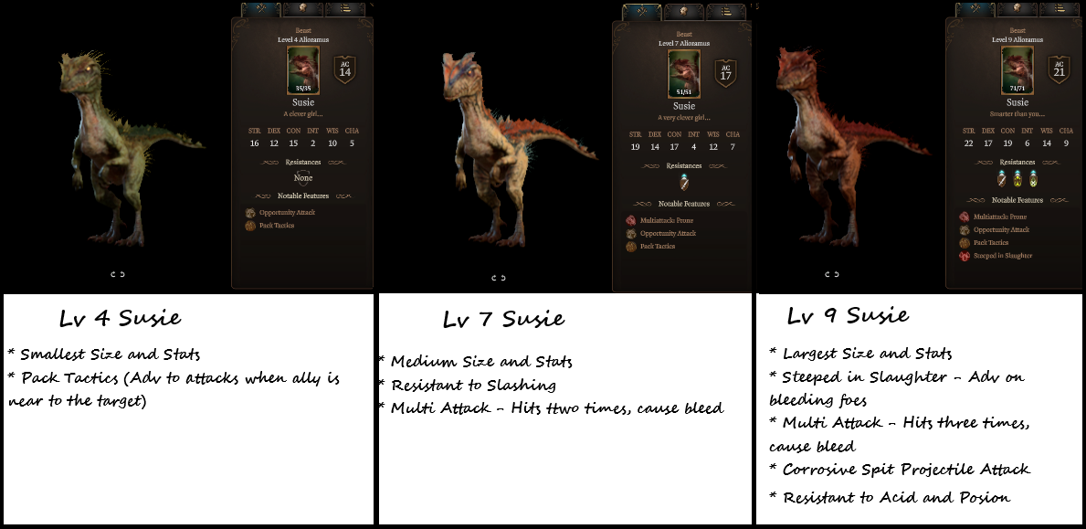 + 迅猛龙的生命值增长更加一致。每级生命值增加20点(4、7、9、11),初始为35点。