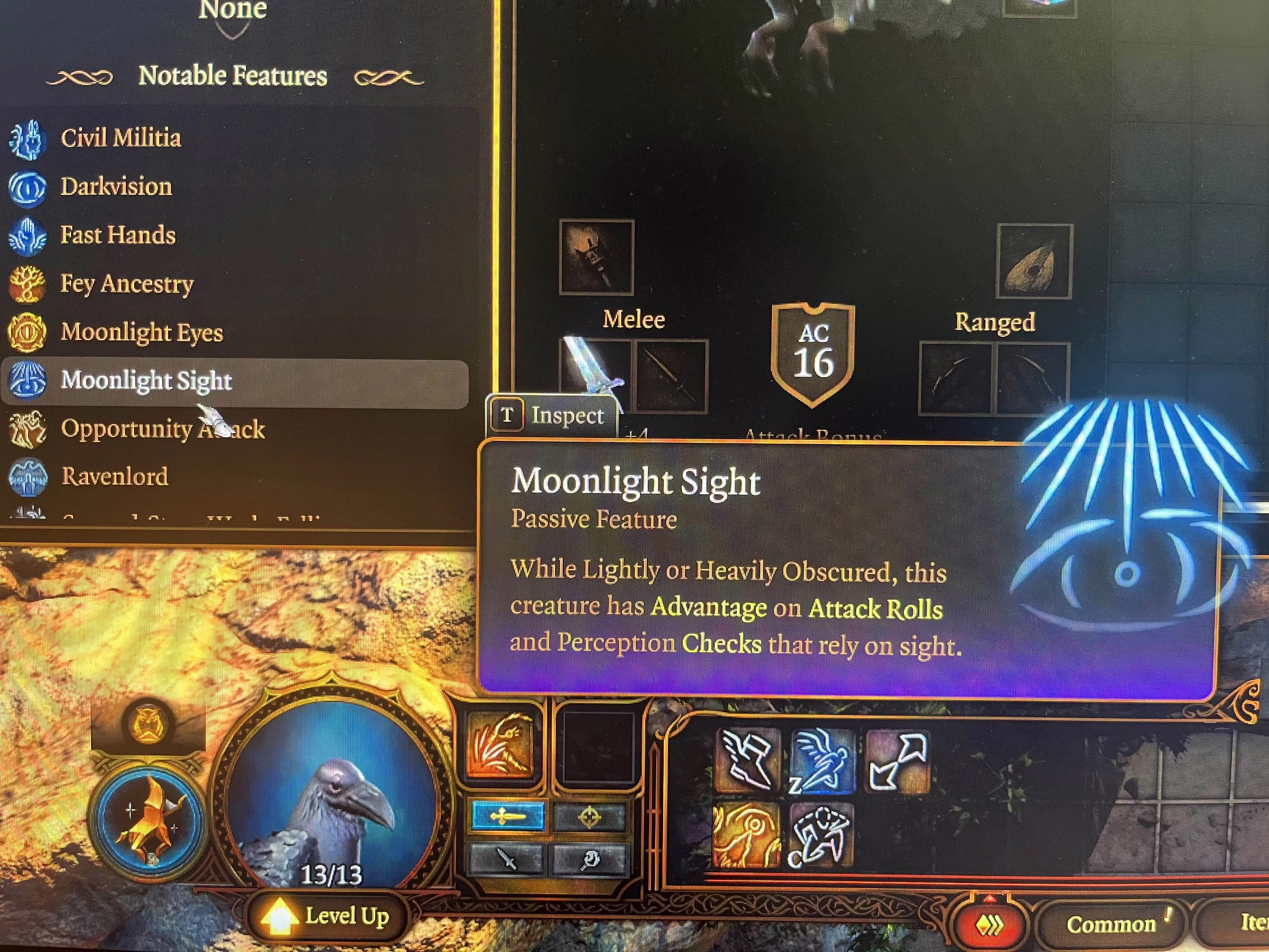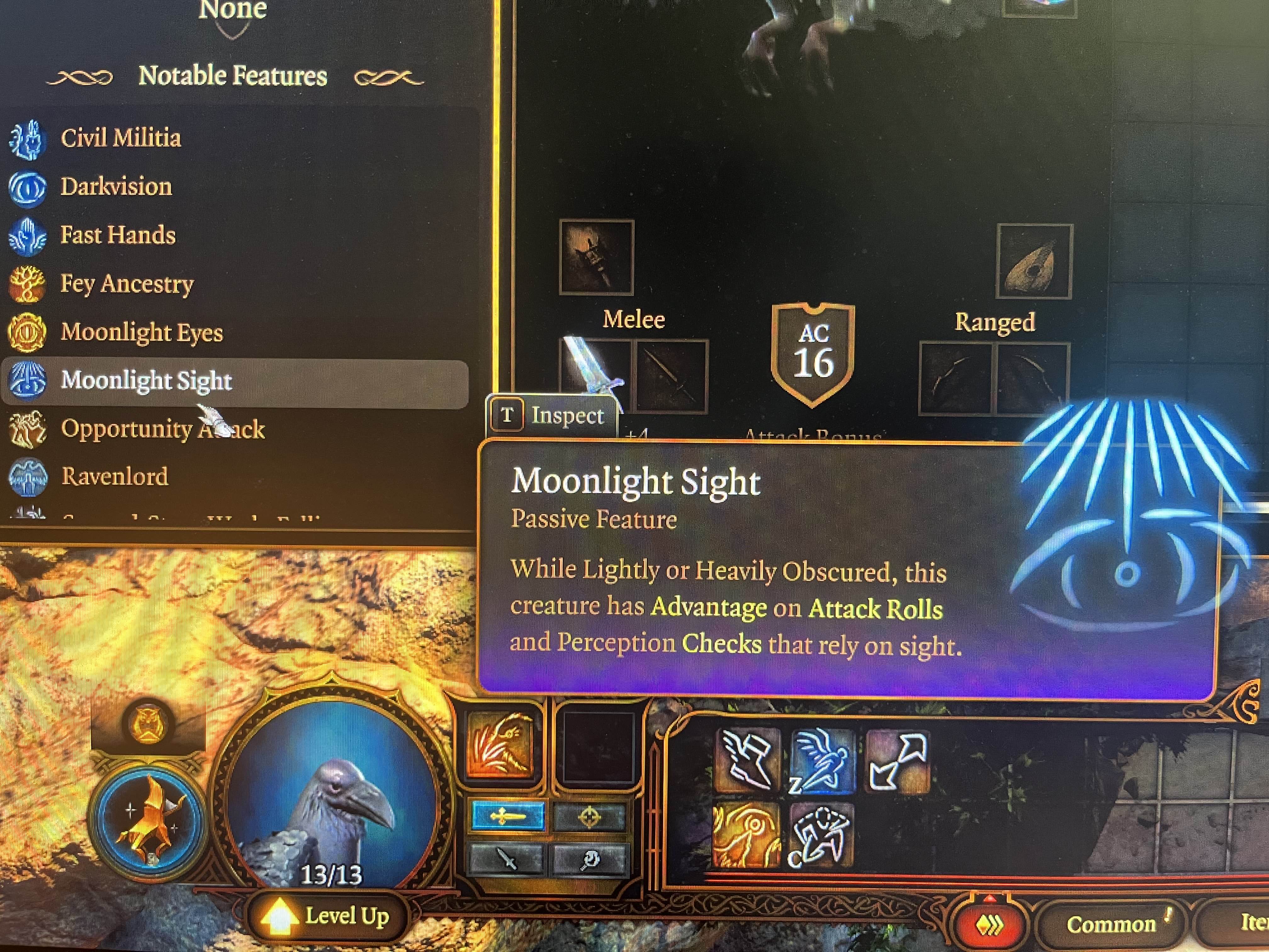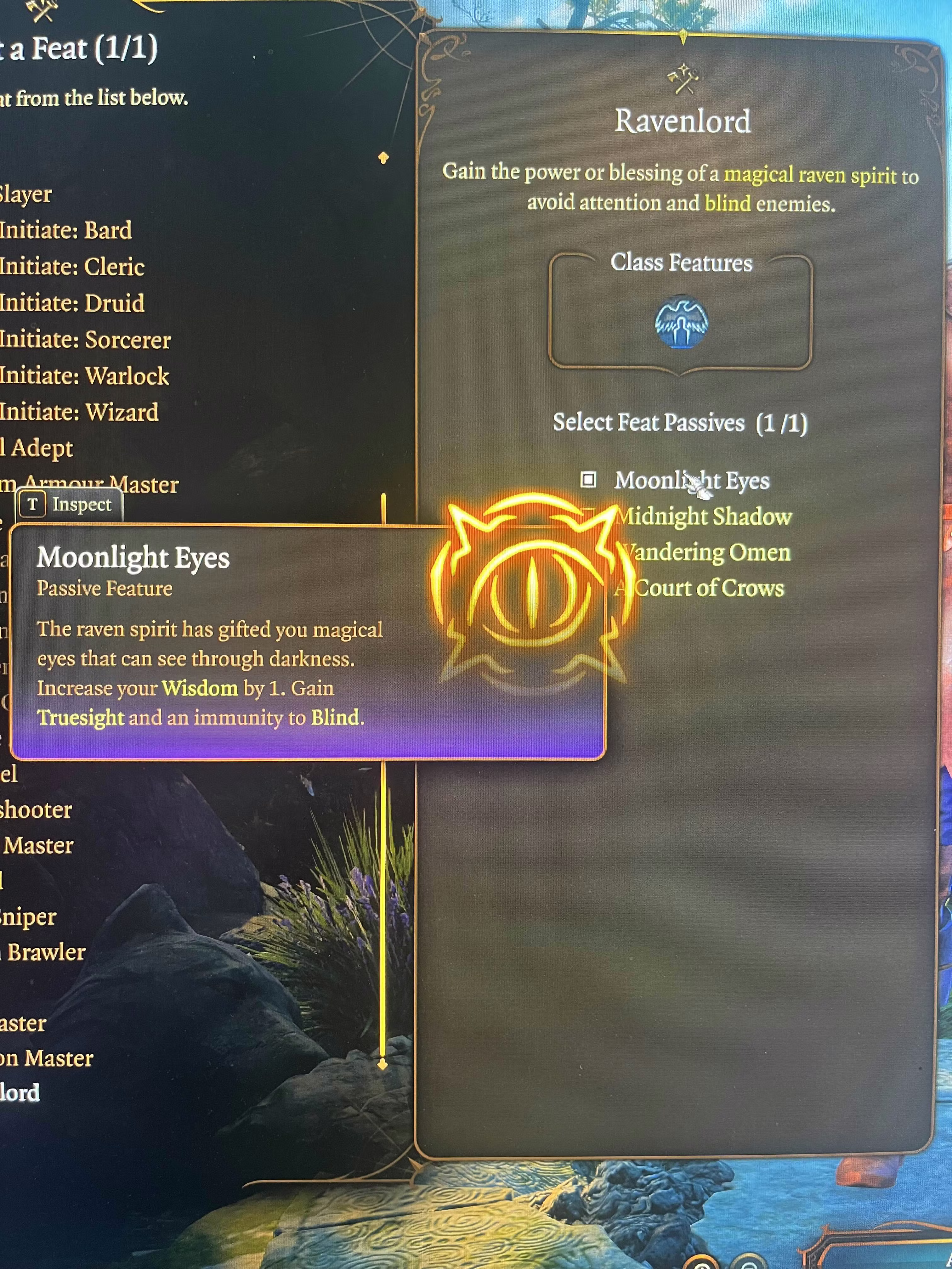 - 月光之眼:获得1点智慧。在被遮蔽时拥有部分真视能力并免疫失明。