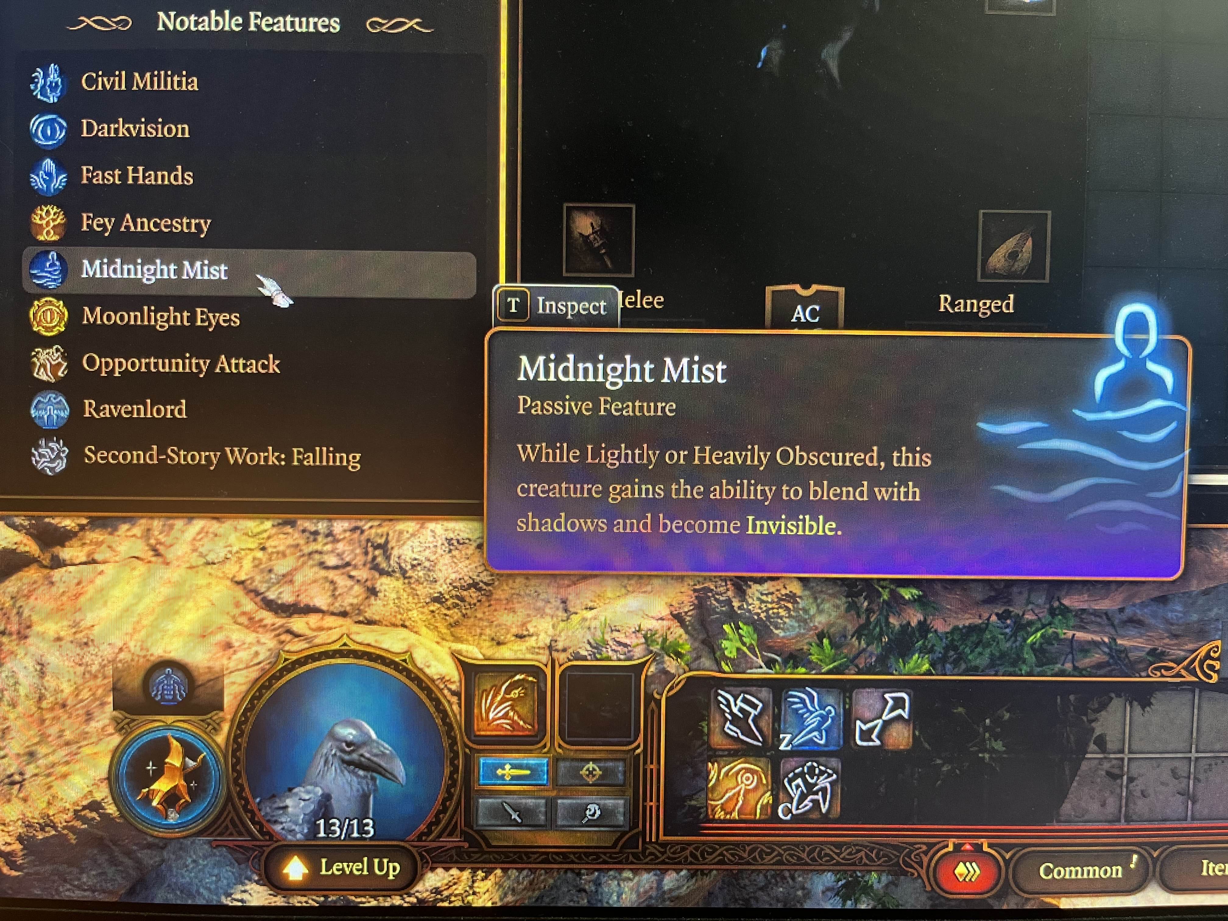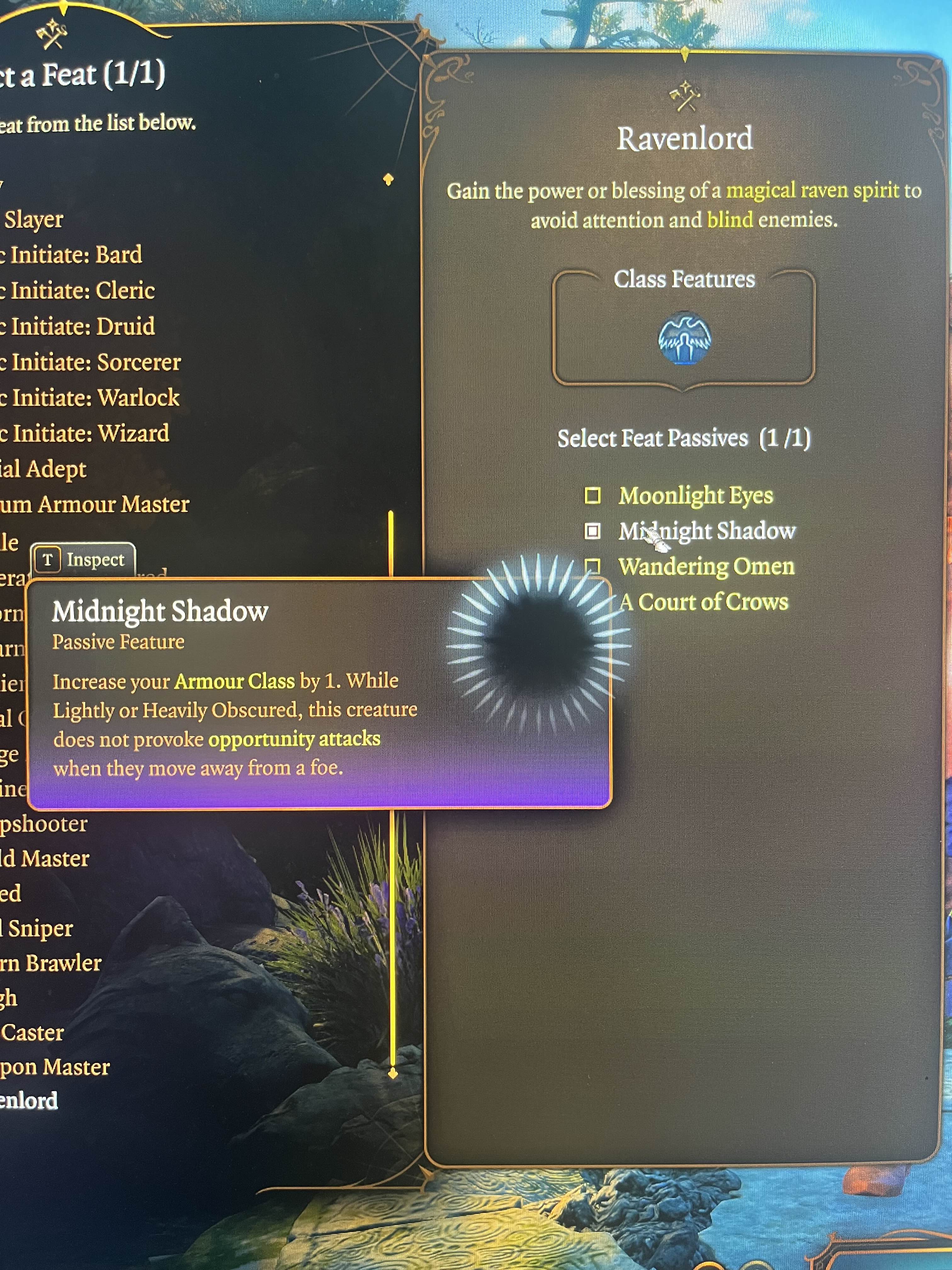 - 午夜阴影:获得1点护甲值。在被遮蔽时不会触发机会攻击。