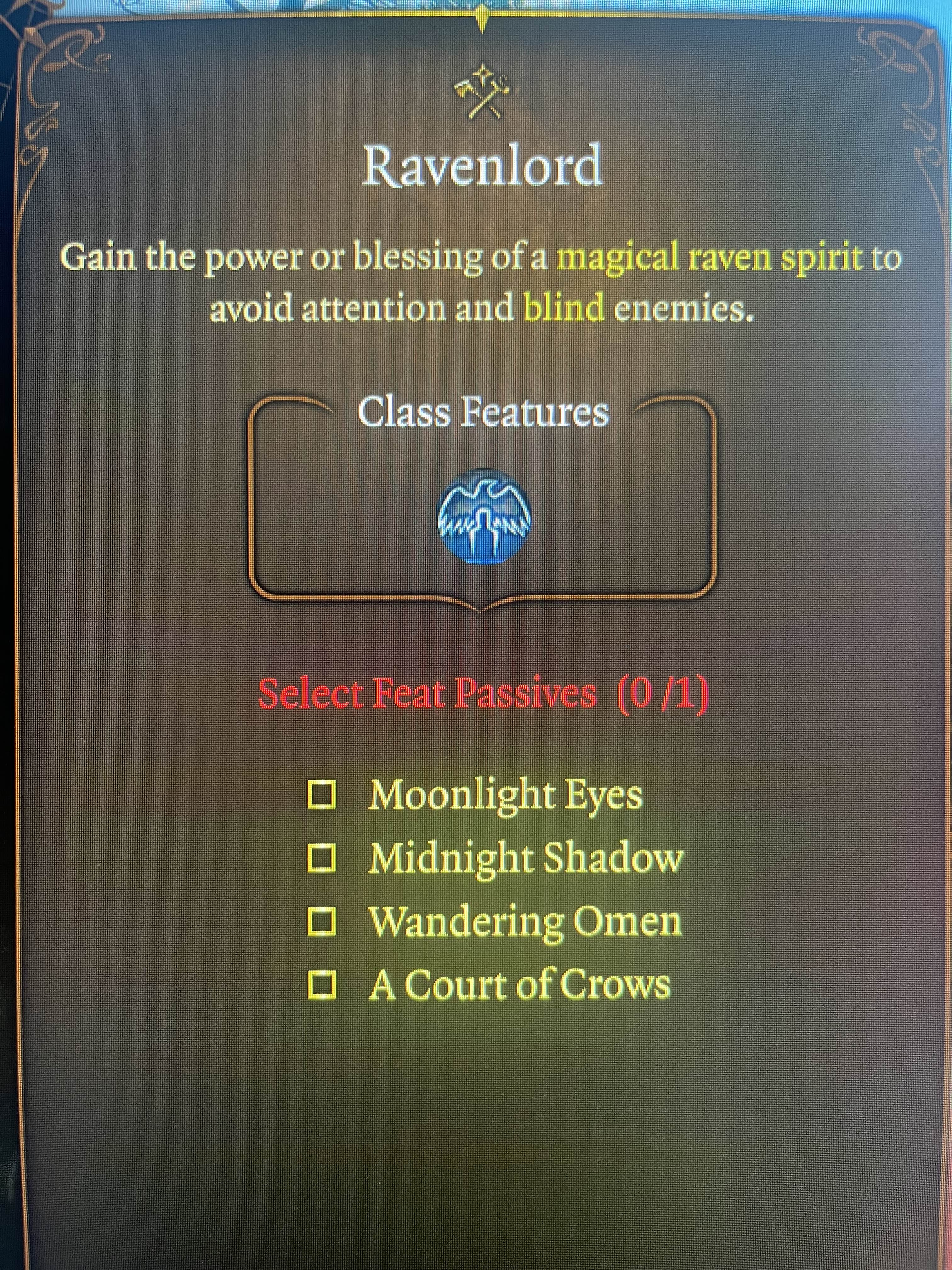 - 乌鸦之庭:获得1点智力。获得一只乌鸦同伴和学徒。