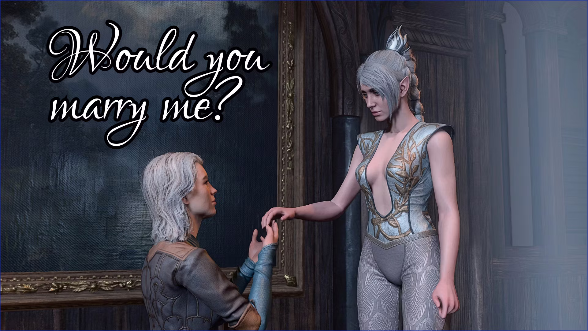 - 在最终战斗之后,如果你在游戏中任何时刻让影心拒绝了夏尔并决定杀死大脑,则你可以向她求婚。适用于所有性别、种族等。高体形1、2、3和4都有漂亮的动画效果。巨龙族和矮小种族的求婚版本仅包含对话。