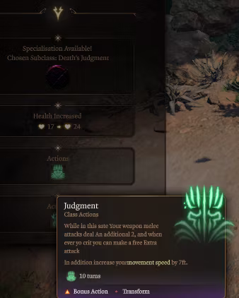 – 更高级别生命值:6 + 宪法调整值每提升一个收割者等级