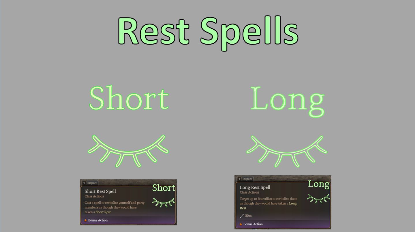 更新日志:我意识到你不需要针对特定的人来使用这个法术,它可以影响整个队伍。现在它的效果类似于喊话法术,施放后无论距离多远,只要有人被分配到你的队伍中,他们都会受益于短休法术的施放。我还想指出的是,你可以在这个法术在战斗中施放,但由于处于战斗状态,其效果不会生效,请确保你在非战斗状态下施放以避免浪费额外动作。