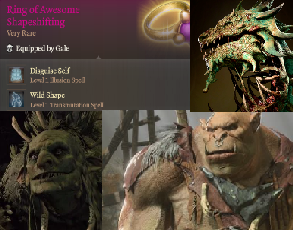 这是一款神奇的变形戒指,佩戴者可以使用 WildShape(获得模型和动作)或 Disguise Self(获得模型并保留原有角色的动作)。该戒指可以在靠近教堂入口附近的渔民身上找到,或者在游戏中其他商人处获取。