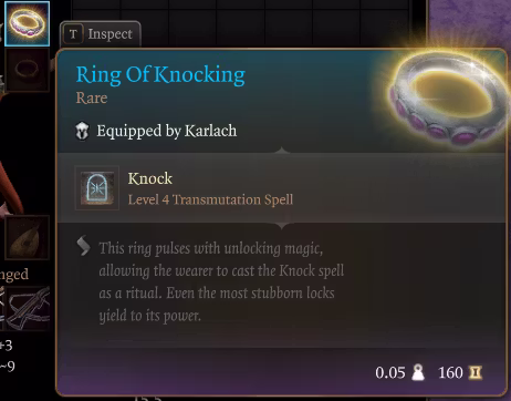 你可以在教程箱中找到这枚戒指,或者从像 Arron、Blurg 和 Entharl Danthelon 这样的商人那里购买。非常适合那些想跳过开锁麻烦的玩家!