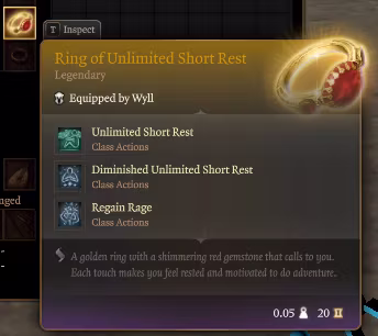 一个可以让您无限次施放吟游诗人的“休息之歌”的戒指。
