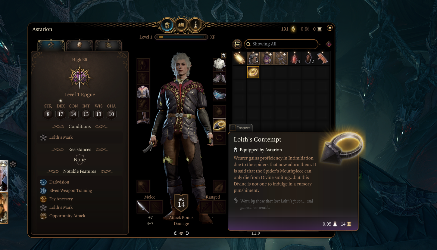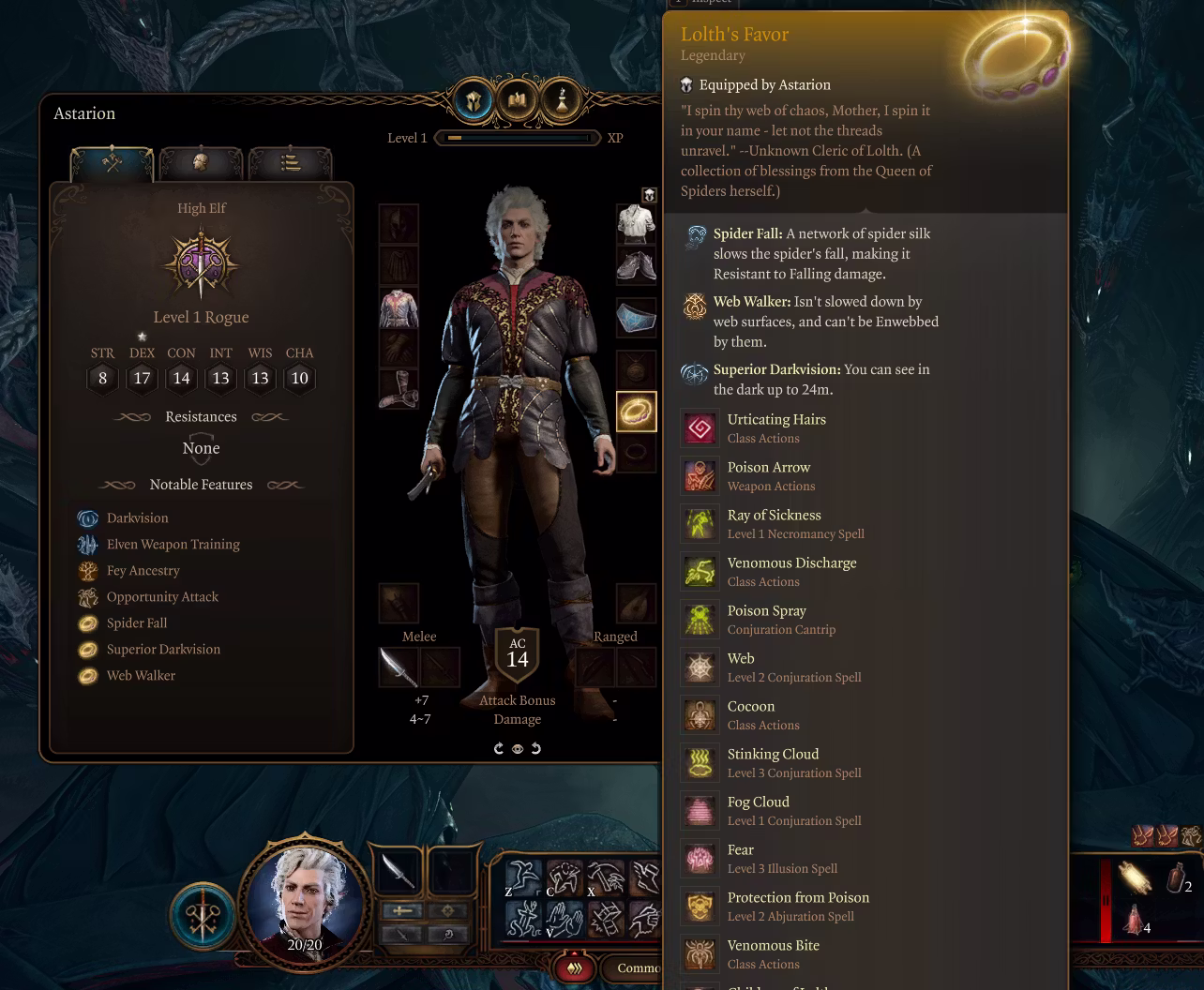 - 墨迹(早期访问时的法术 – 生成一片黑暗云并切换角色进入潜行模式)
