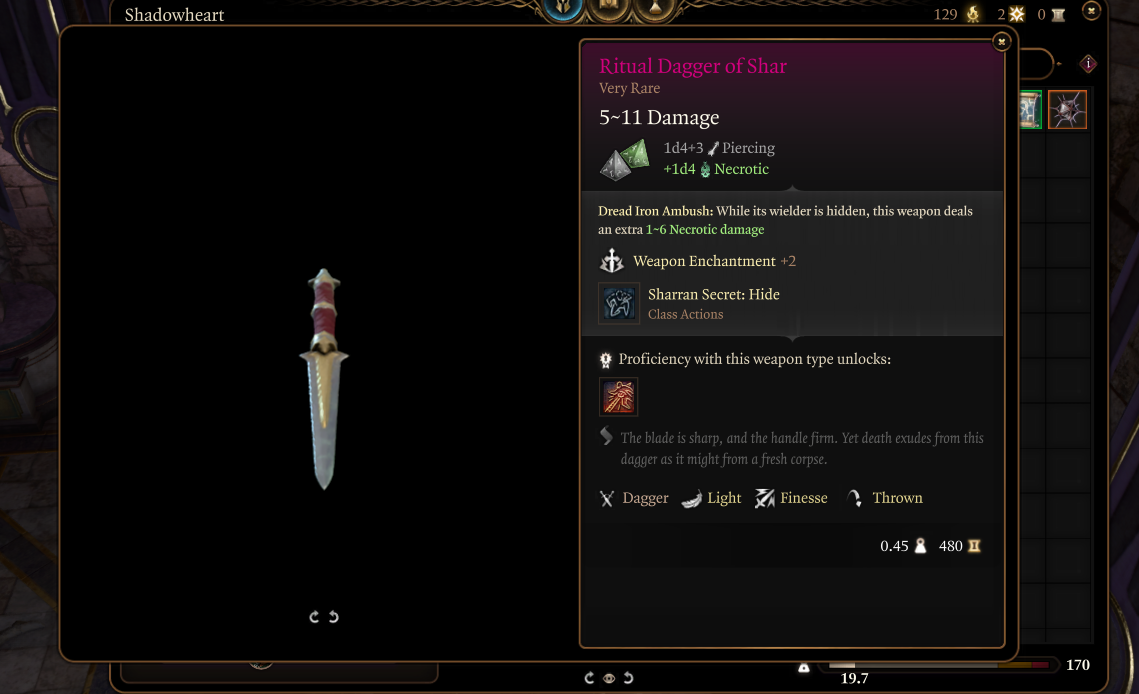 我制作这个模组是因为原版的匕首在第二幕中与其他夏尔活动相比显得过于弱小,不适合成为一件独特的物品。