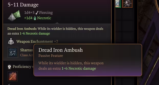 - 继承被动技能“恐惧铁质伏击”,在潜行时额外造成 1d6 毒素伤害。